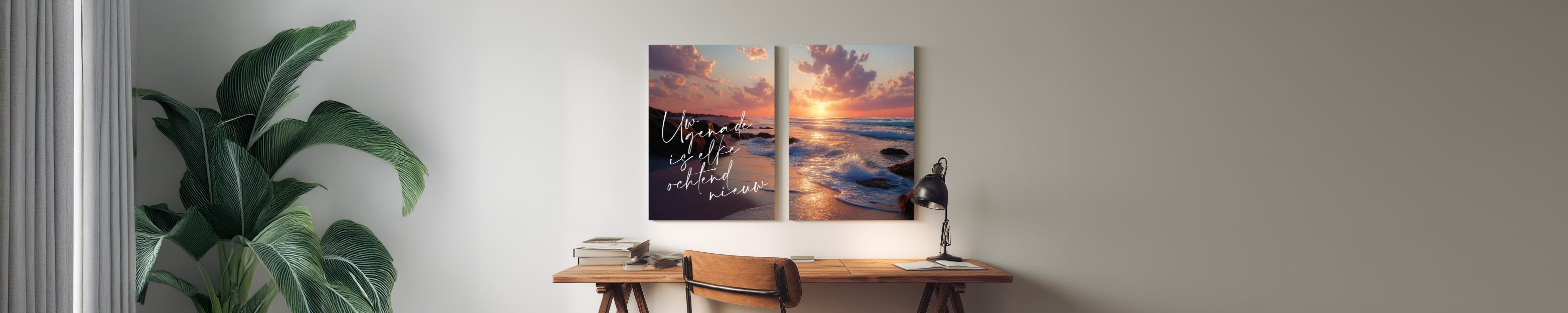 Ideaal voor grotere muren of als statement in elke ruimte. Met hun hoogwaardige afwerking en scherpe prints voegen ze niet alleen stijl toe aan je huis, maar bieden ze ook dagelijkse inspiratie en bemoediging.