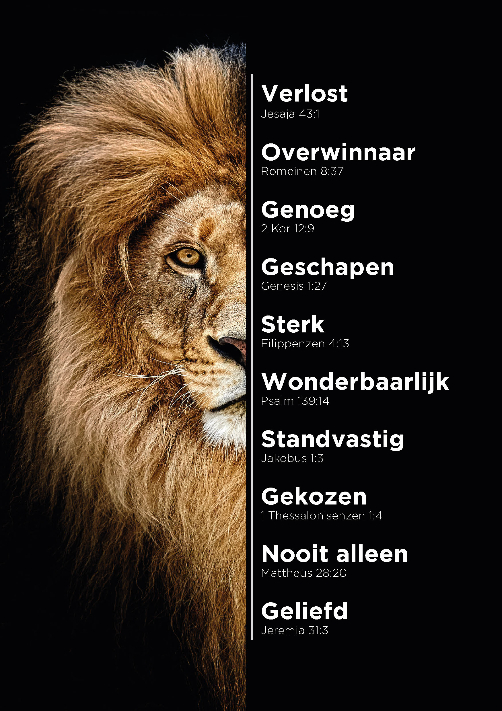 Laat je bemoedigen door de liefdevolle woorden die God over je spreekt! Dit A4-bord is mooi voor jezelf als herinnering, maar ook mooi om weg te geven als geschenk.
