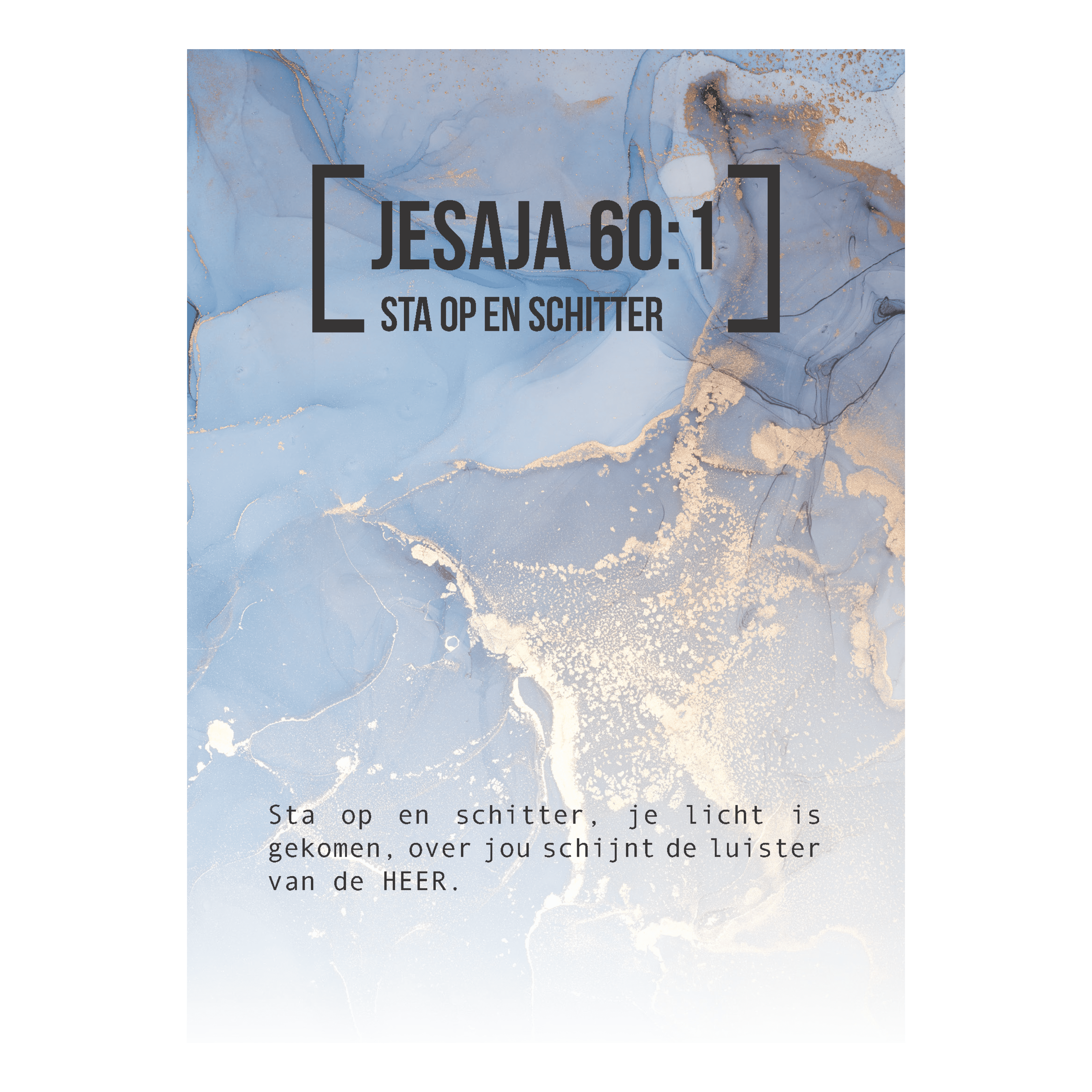 Jesaja 60:1: ‘Sta op en schitter, je licht is gekomen, over jou schijnt de luister van de HEER.’ (NBV21)