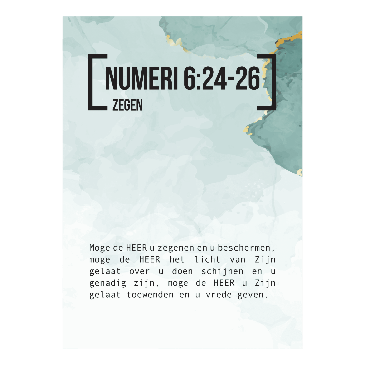 Numeri 6:24-26: ‘Moge de HEER u zegenen en u beschermen, moge de HEER het licht van Zijn gelaat over u doen schijnen en u genadig zijn, moge de HEER u Zijn gelaat toewenden en u vrede geven’.’ (NBV21)