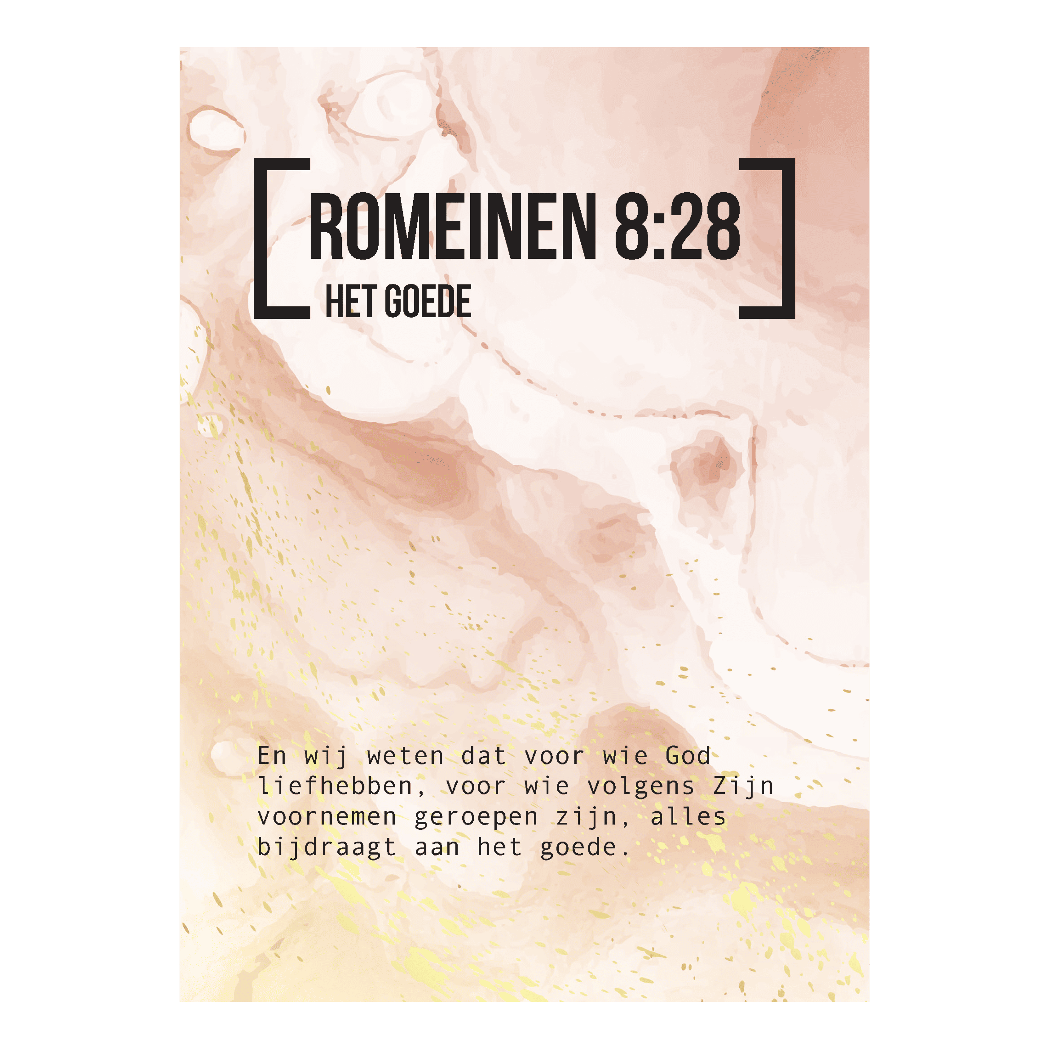 Romeinen 8:28: ‘En wij weten dat voor wie God liefhebben, voor wie volgens Zijn voornemen geroepen zijn, alles bijdraagt aan het goede.’ (NBV21)