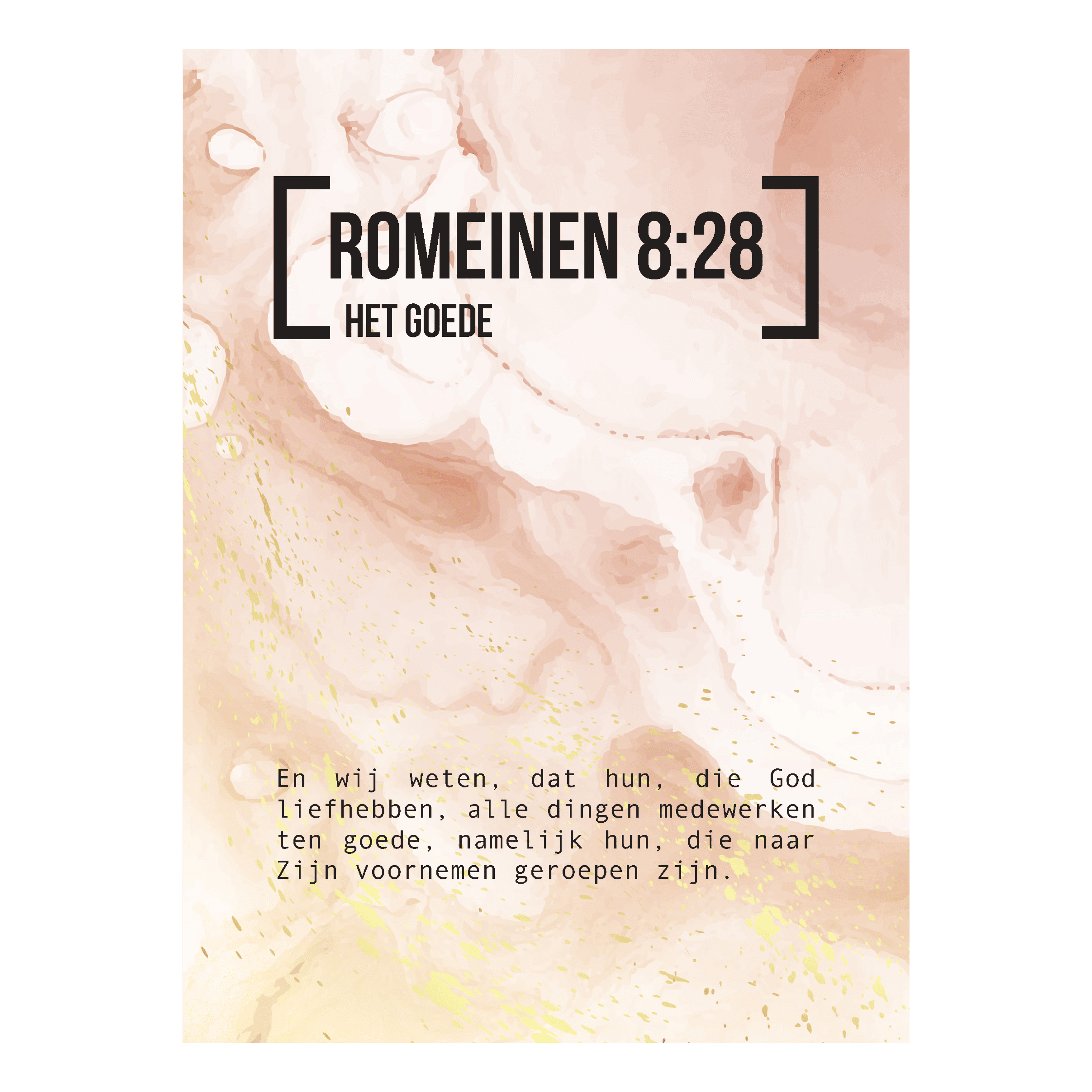 Romeinen 8:28: ‘En wij weten, dat hun, die God liefhebben, alle dingen medewerken ten goede, namelijk hun, die naar Zijn voornemen geroepen zijn.’ (SV)