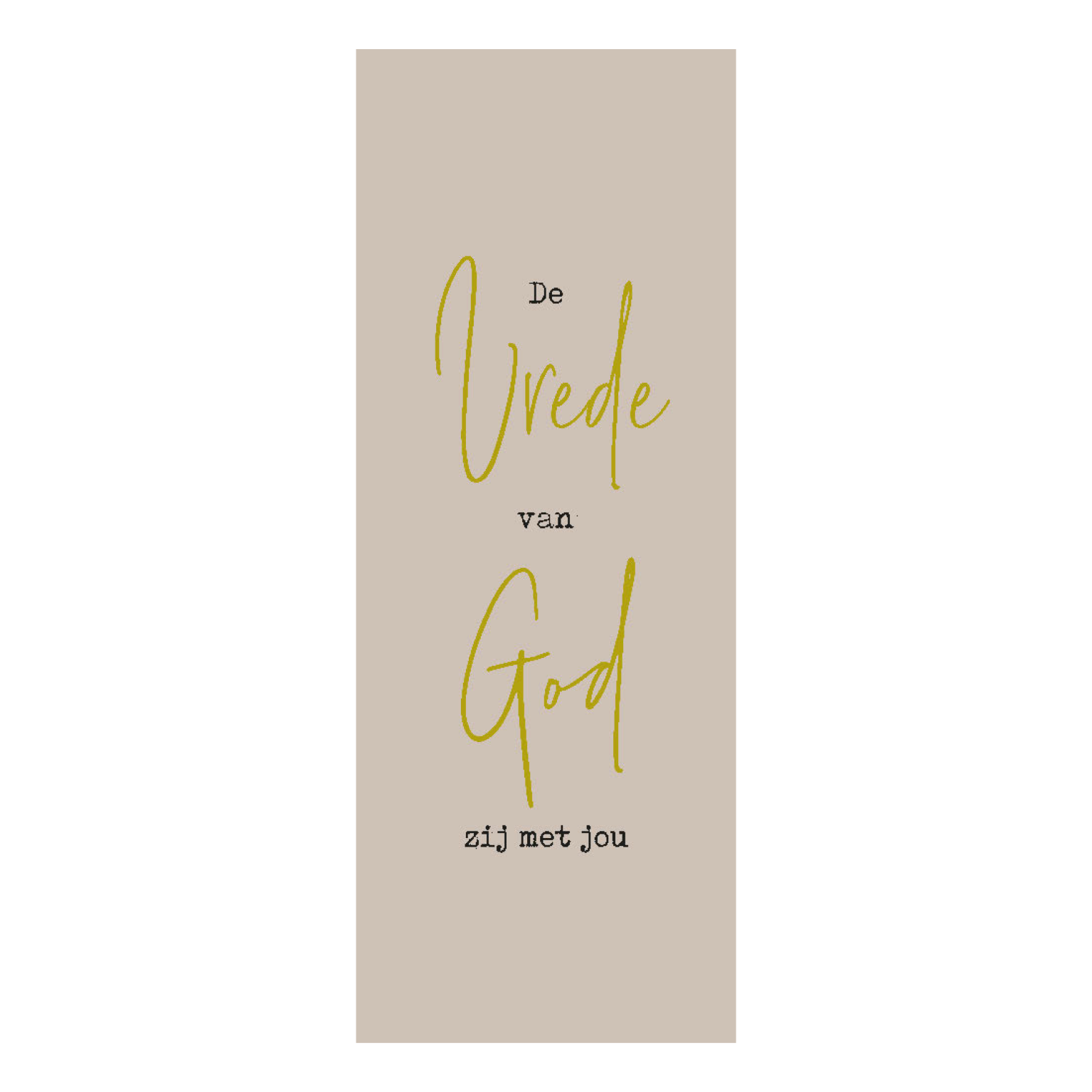 Luxe boekenlegger met de tekst: ‘De Vrede van God zij met jou’.