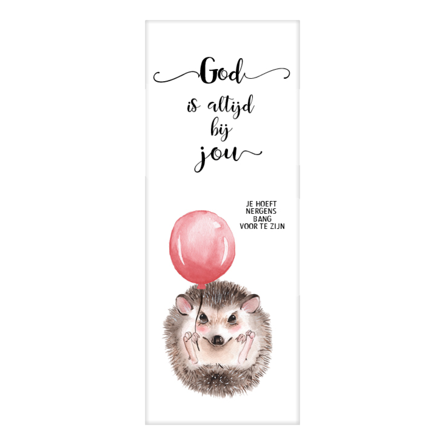 Boekenlegger met vrolijke afbeelding van een diertje en een verwijzing naar een kinderliedje.