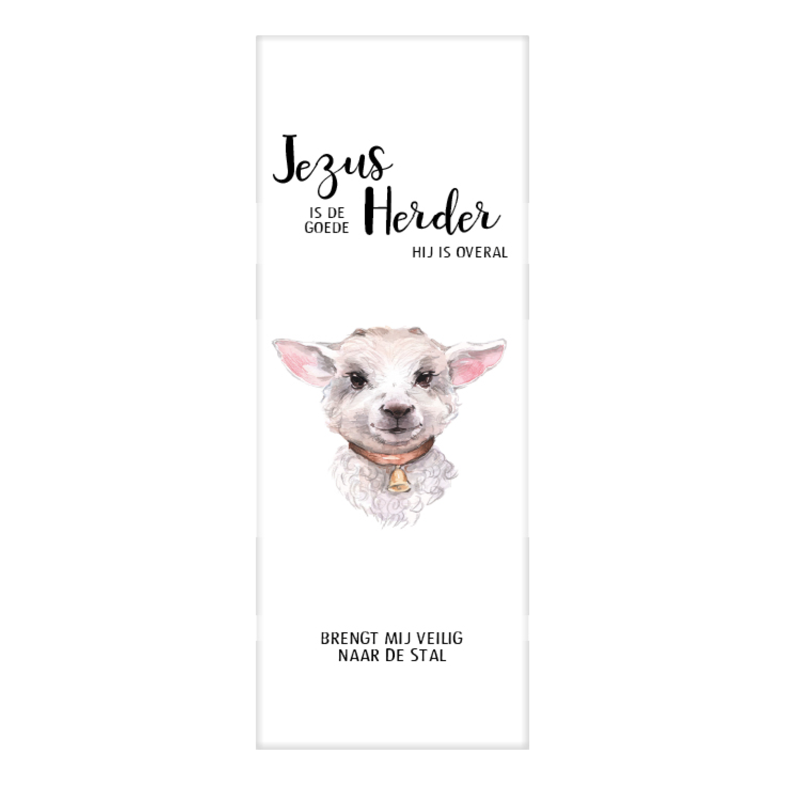 Boekenlegger met vrolijke afbeelding van een diertje en een verwijzing naar een kinderliedje.