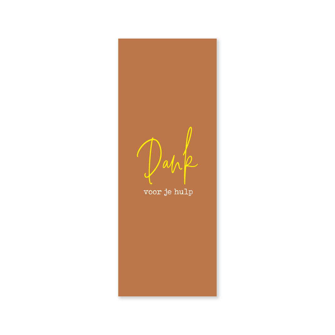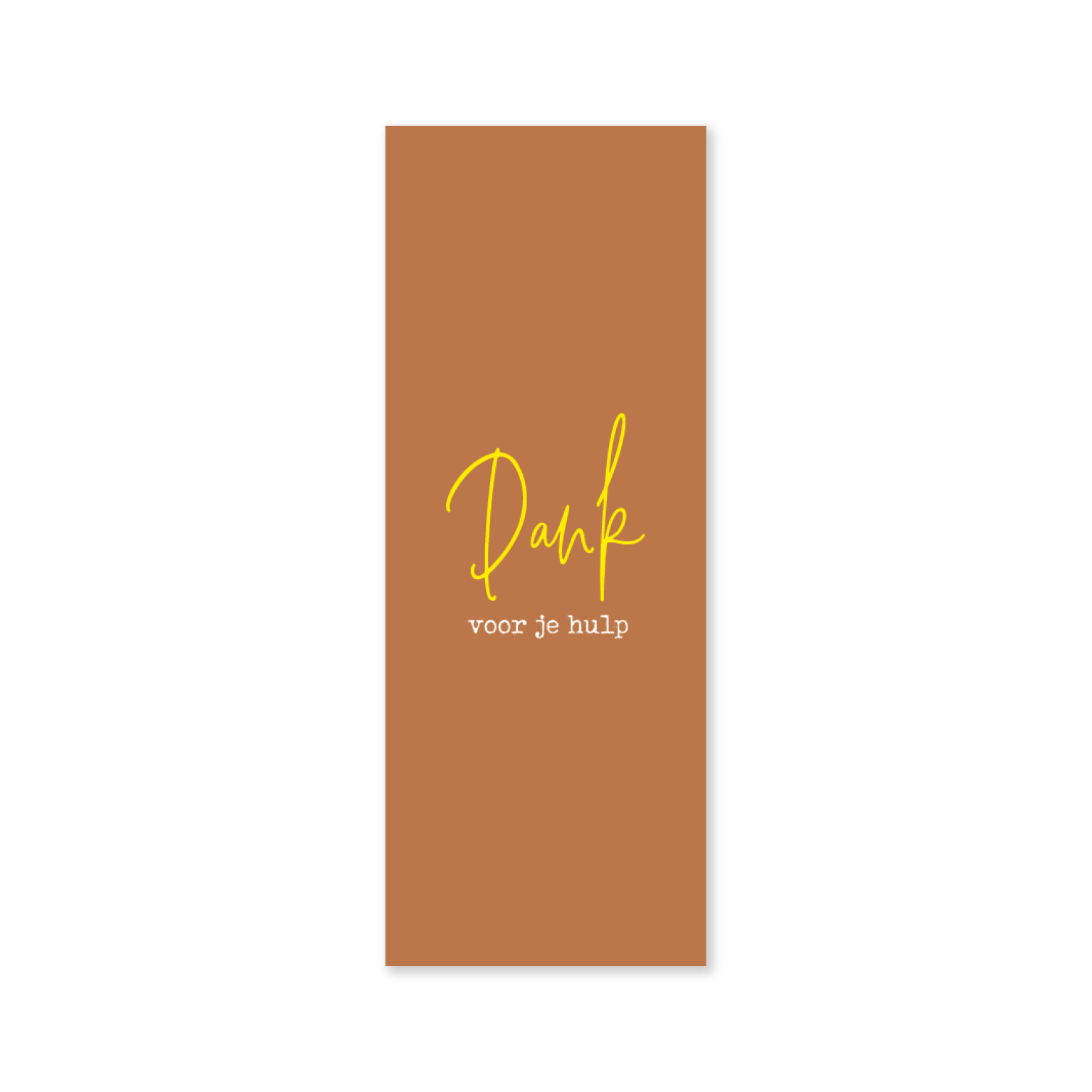 Deze stijlvolle boekenlegger is een eenvoudige manier om dankbaarheid te tonen. De gouden letters geven de tekst Dank voor je hulp extra waarde.