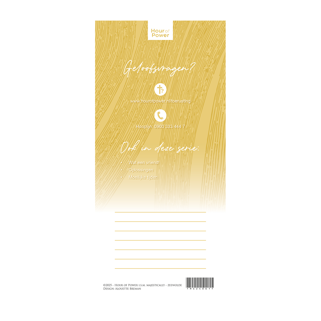 Deze kaart is tot stand gekomen in samenwerking met Hour of Power. Op de achterkant vind je een verwijzing naar de website en de HOOPlijn. Daarnaast is er ruimte om een persoonlijke boodschap toe te voegen.