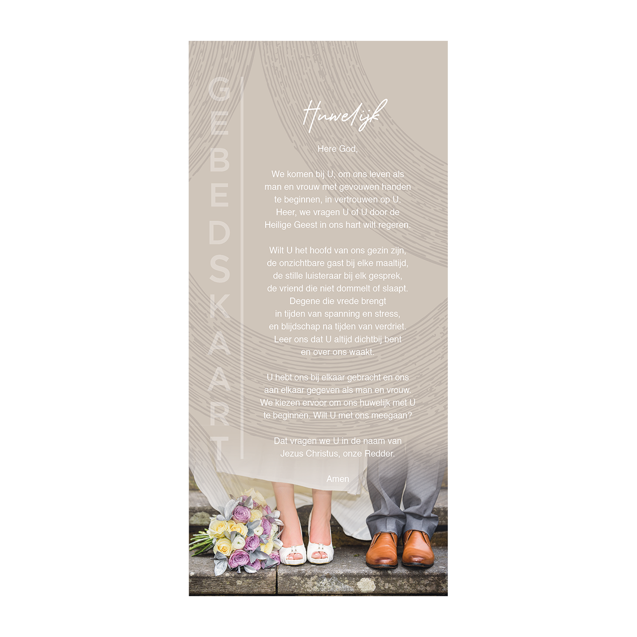 Deze gebedskaart is een waardevol geschenk voor een (aanstaand) bruidspaar. Het helpt hen om hun huwelijk met gebed te beginnen en God uit te nodigen om deel uit te maken van hun huwelijksleven. Een betekenisvol cadeau voor elke bruiloft.