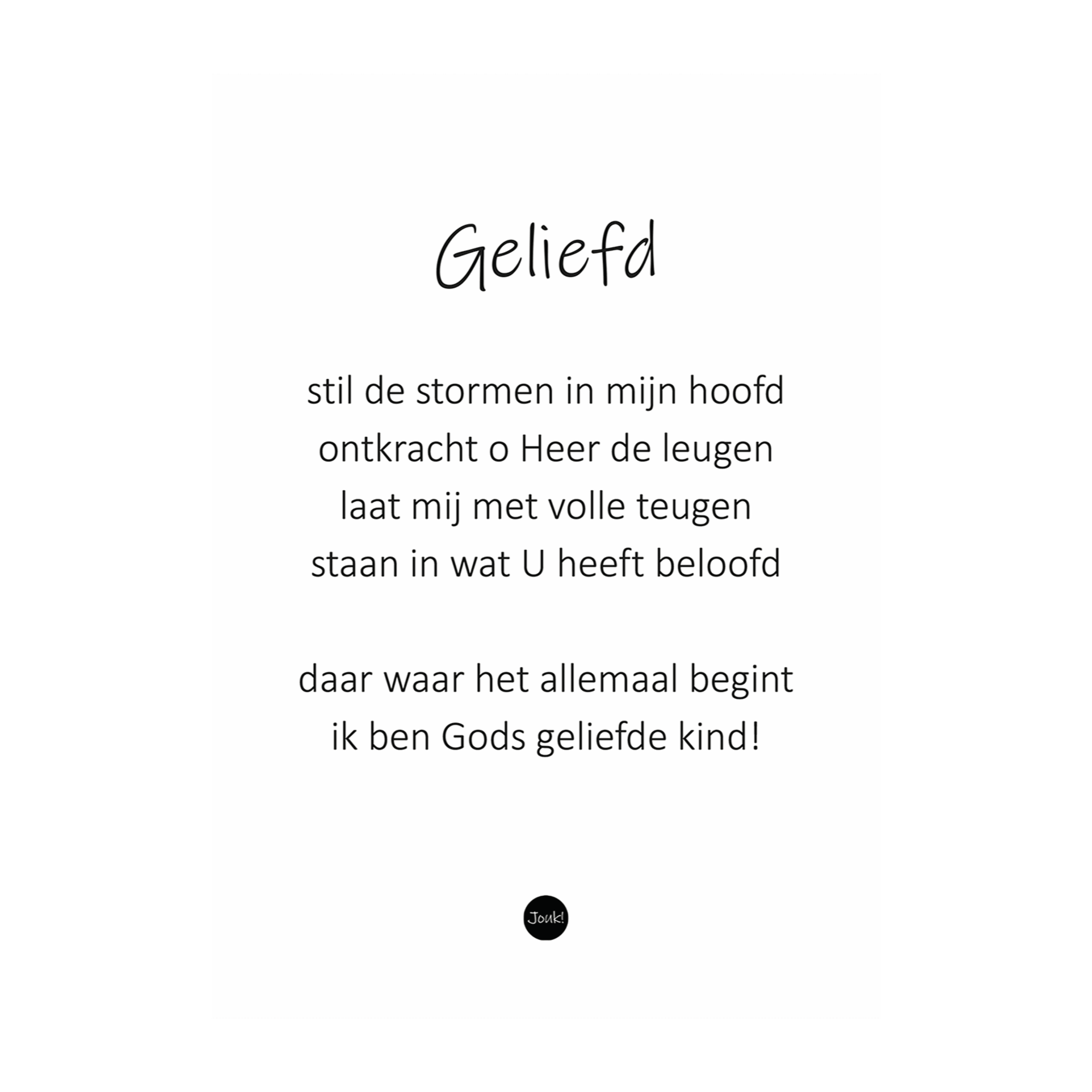 Deze kaart in A6-formaat wordt geleverd met envelop. Door het rustige design in zwart en wit, gaat alle aandacht naar de woorden van hoop, liefde en bemoediging.Onderdeel van de kaartenserie Knipoogje!