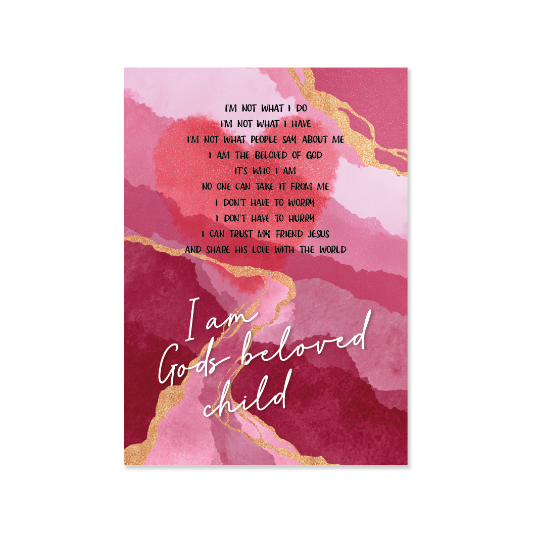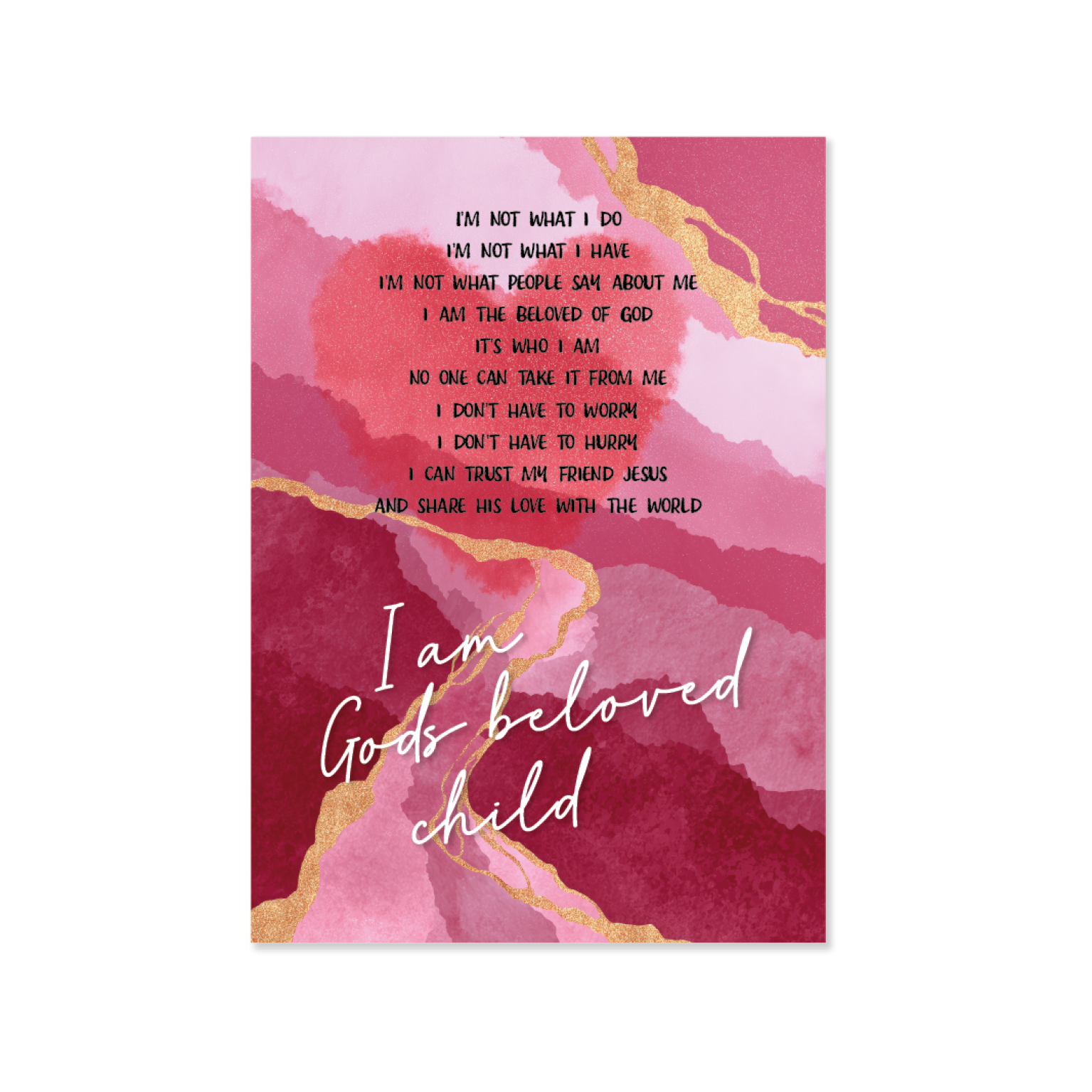 Stijlvol plexiglas wandbord in donkerrode/roze tint met marmerlook en hart. De Engelse tekst verwijst naar het credo van Hour of Power en benadrukt Gods liefdevolle belofte. Het plexiglas zorgt voor een luxe uitstraling waarbij licht en kleur prachtig samenkomen.