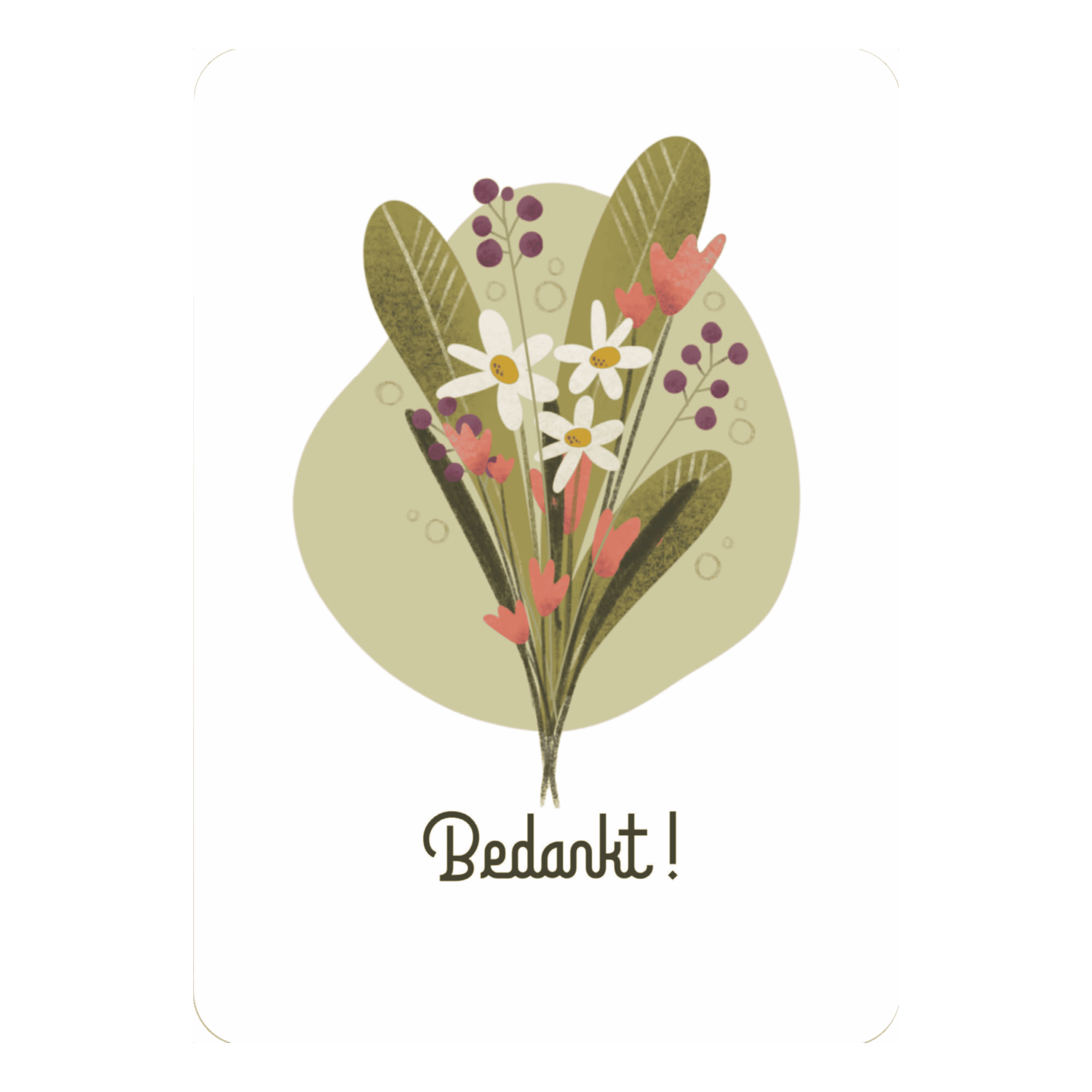 Deze kaart op A6-formaat wordt geleverd met envelop. De afgeronde hoeken geeft de kaart een prettige, vriendelijke uitstraling.