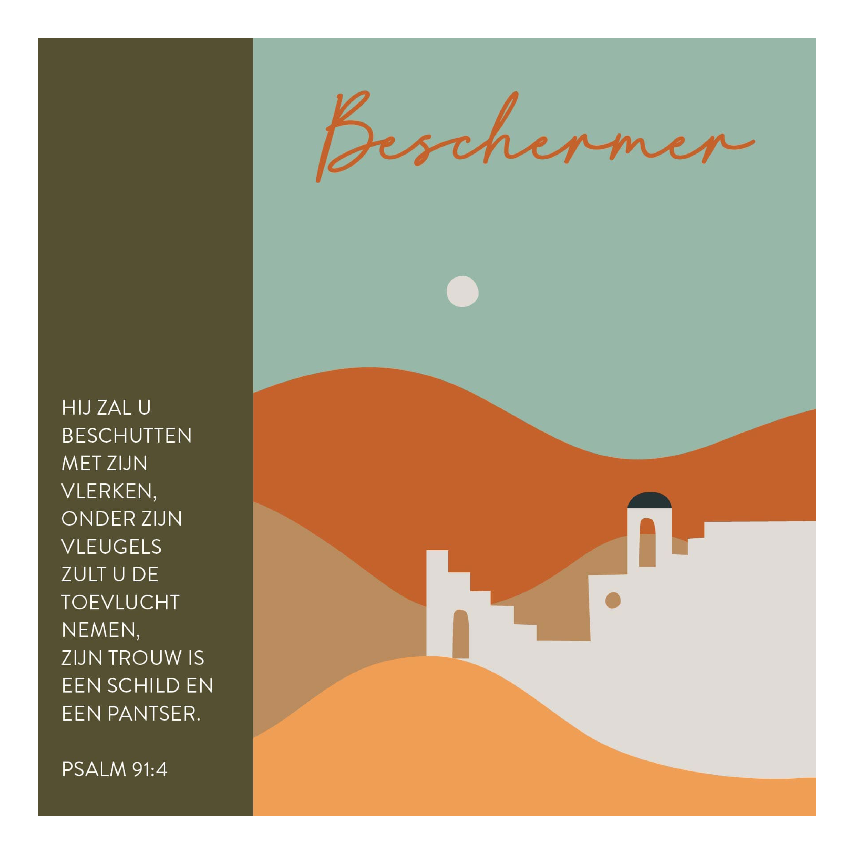 Christelijke enkele kaart van ca. 15 x 15 cm met de tekst: ‘Hij zal u beschutten met Zijn vlerken, onder Zijn vleugels zult u de toevlucht nemen, Zijn trouw is een schild en een pantser.‘ De kaart kan aan de blanco achterzijde beschreven worden. Wordt geleverd met envelop. Artikelnummer: MA56021