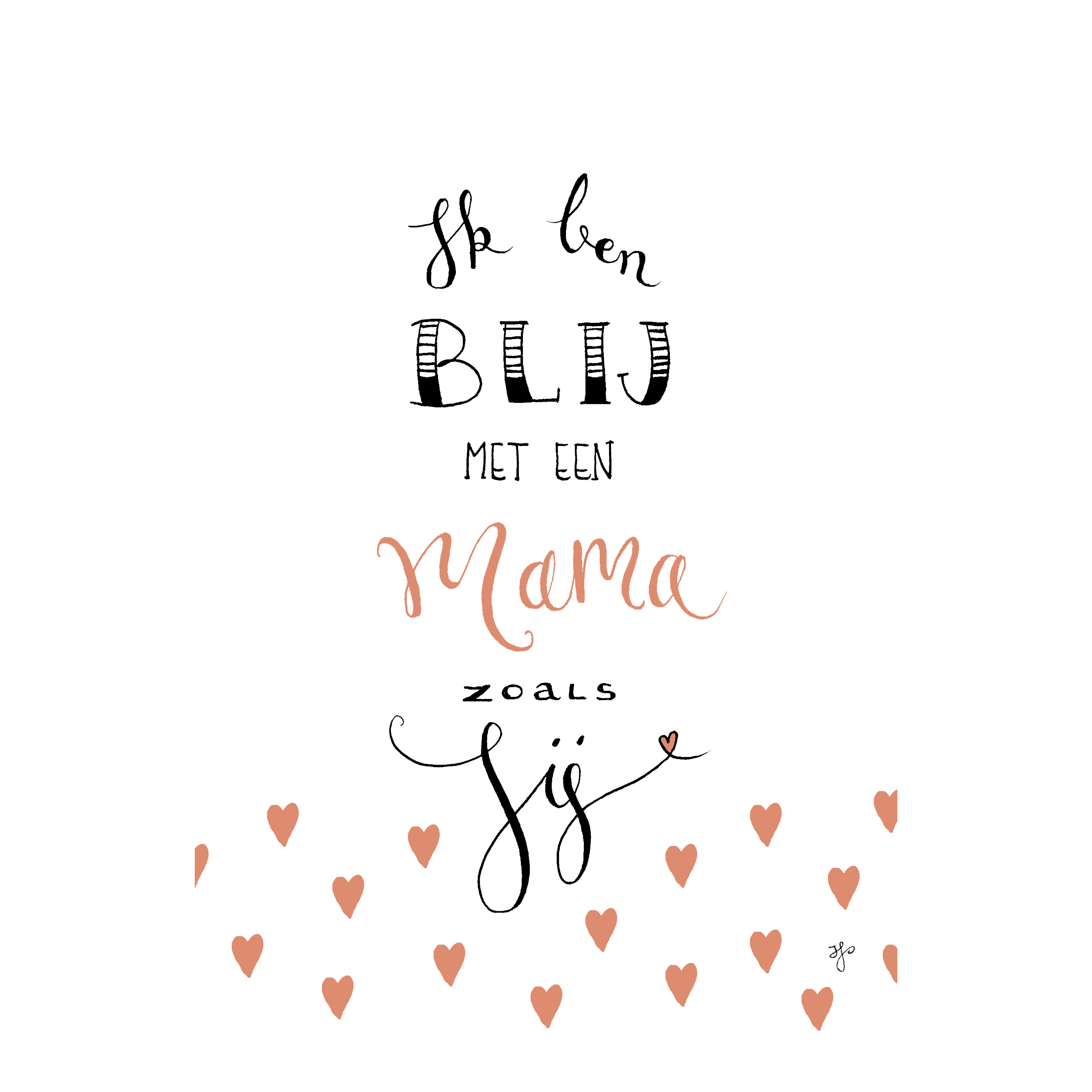 Op zoek naar een kaartje voor Moederdag? Of is er een ander moment dat je je moeder wilt laten weten dat je zo blij bent met haar? Deze enkele kaart met de tekst ‘Ik ben blij met een mama zoals jij’ is daarvoor perfect! De kaart is aan de achterzijde goed te beschrijven en wordt geleverd met envelop.