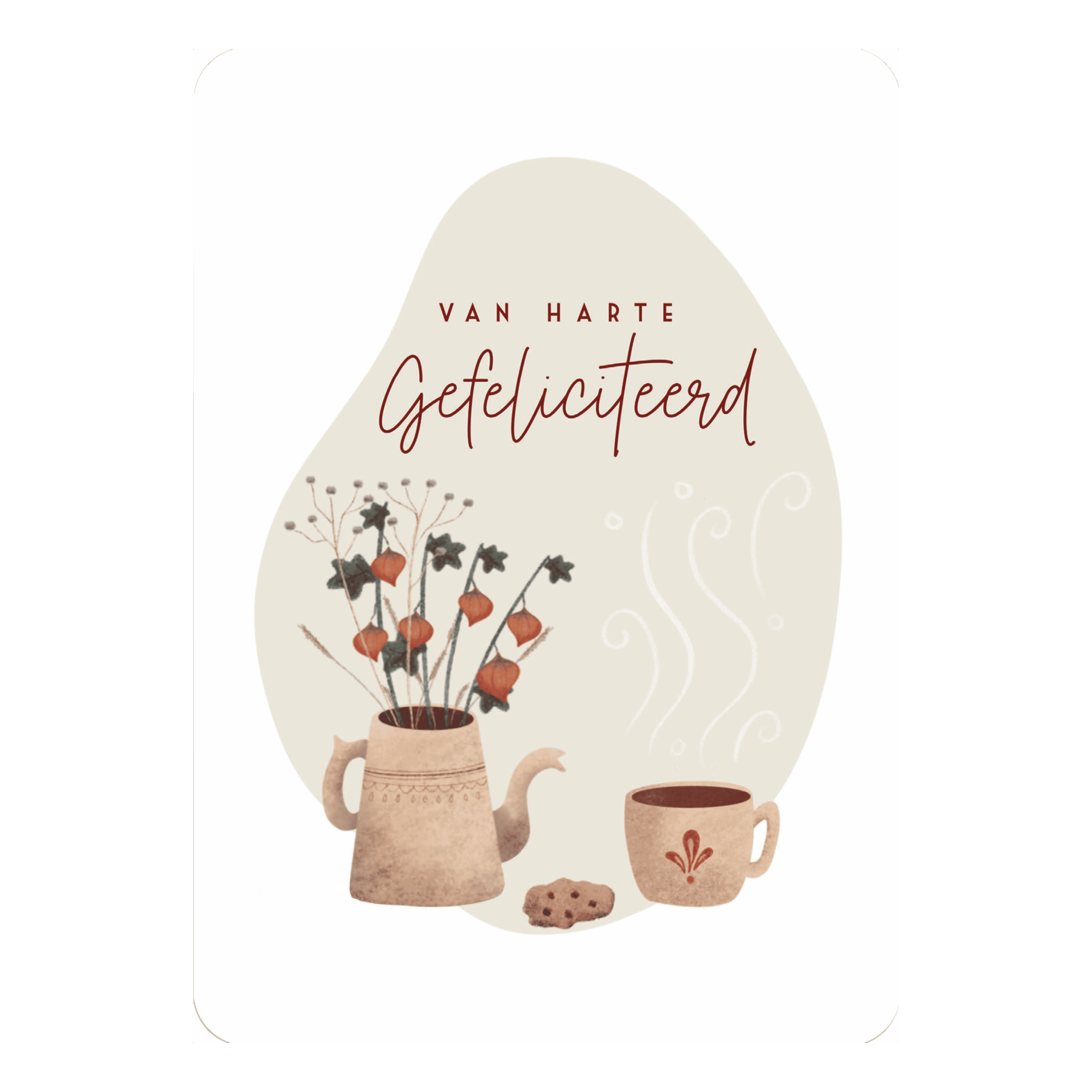 Deze kaart op A6-formaat wordt geleverd met envelop. De afgeronde hoeken geeft de kaart een prettige, vriendelijke uitstraling.