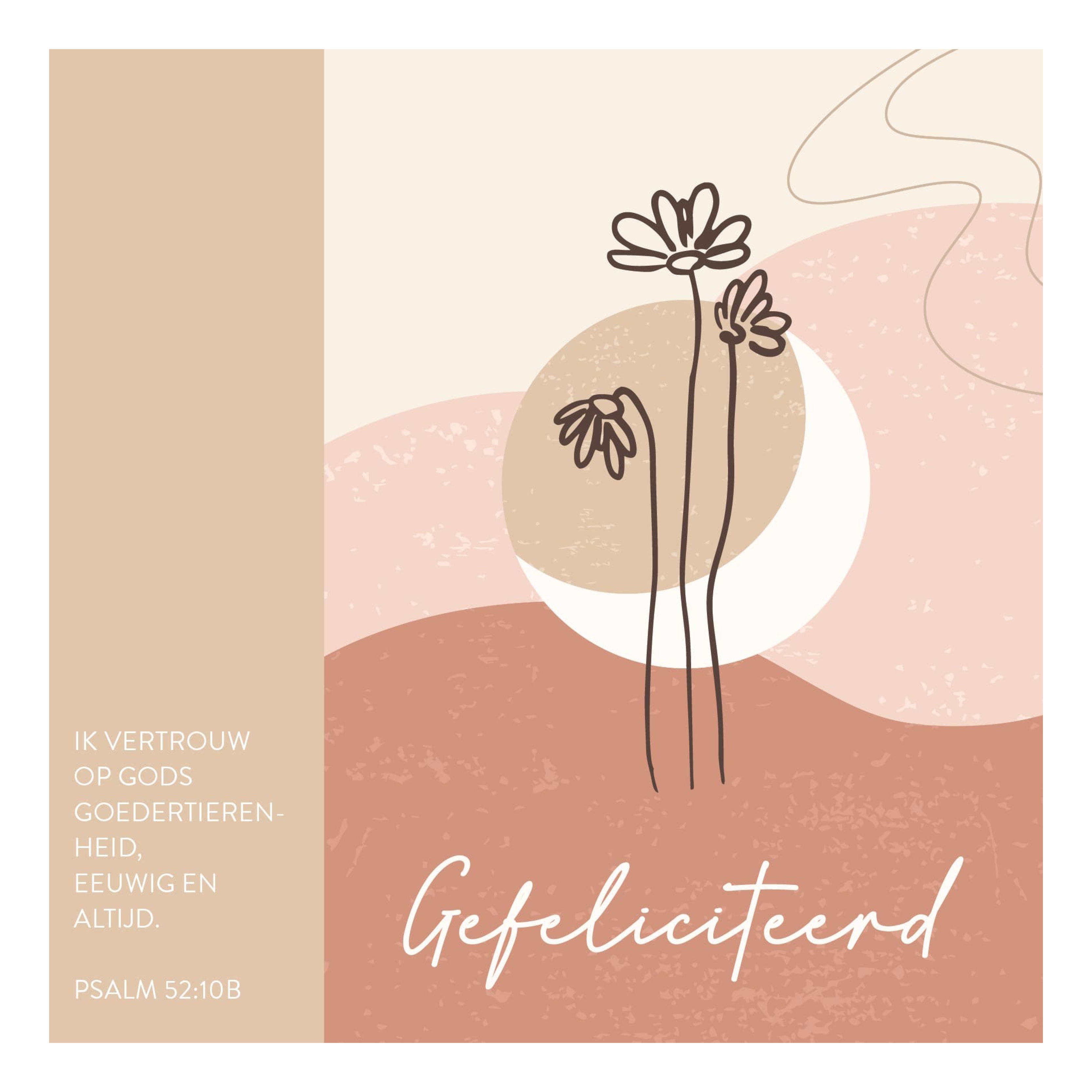 Christelijke enkele kaart van ca. 15 x 15 cm met de tekst: ‘Ik vertrouw op Gods goedertierenheid, eeuwig en altijd.‘ De kaart kan aan de blanco achterzijde beschreven worden. Wordt geleverd met envelop. Artikelnummer: MA56015