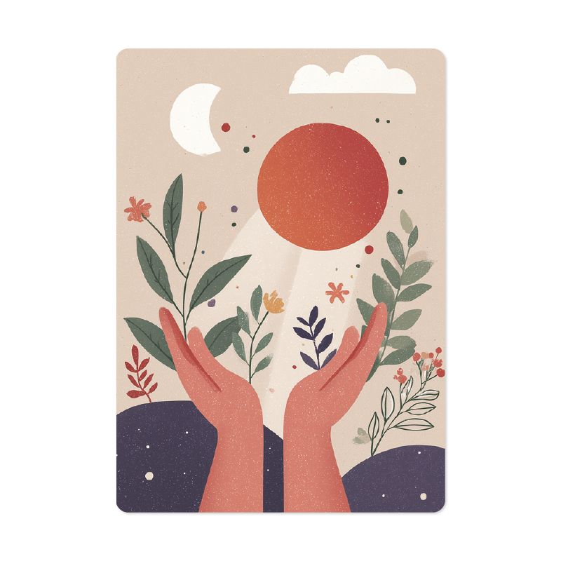 Deze kaart komt uit de Eigenwijs-molen en toont op de voorkant opgeheven handen. Op de achterkant staat de tekstverwijzing Psalm 63:5: ‘U wil ik prijzen, mijn leven lang,