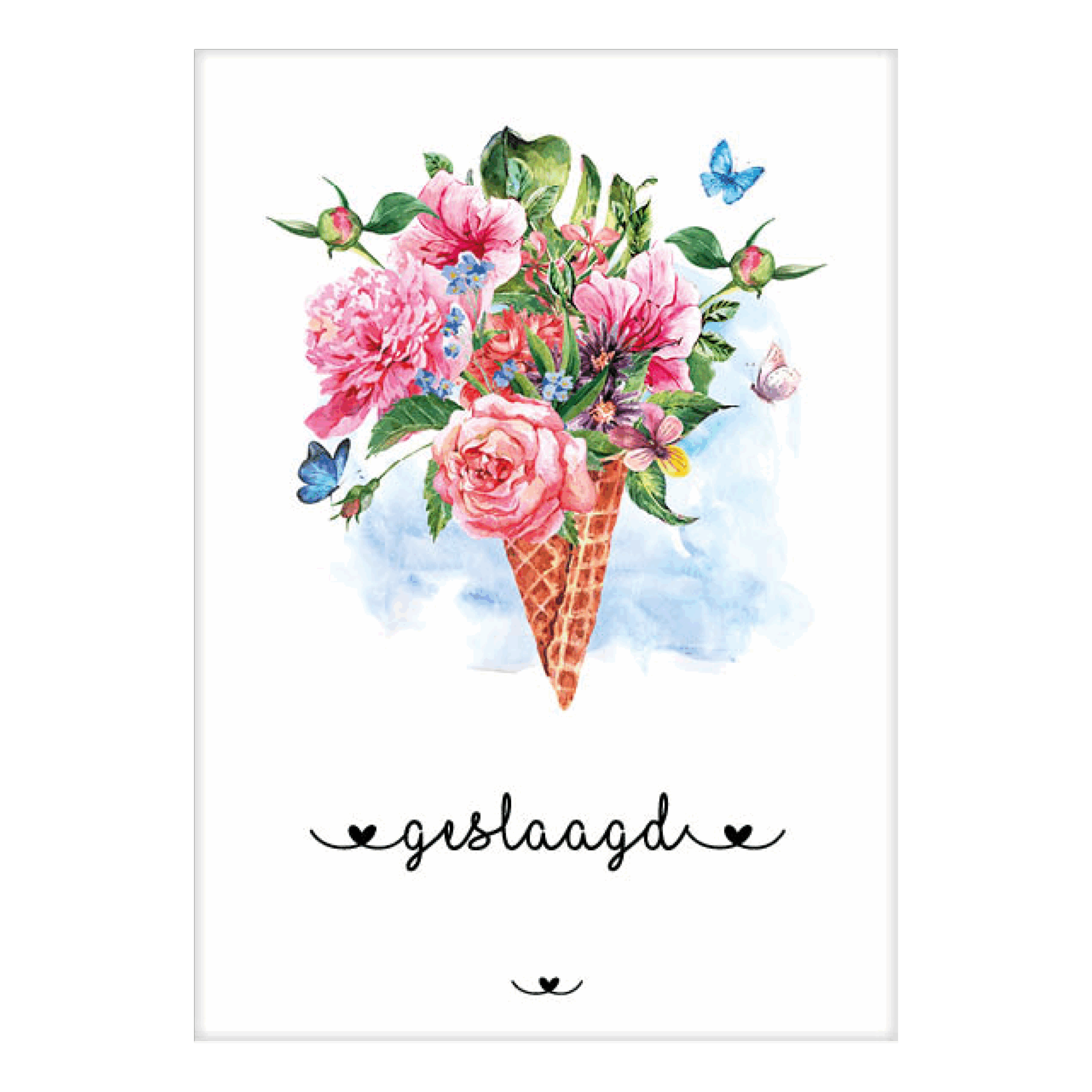 Kaart ‘Geslaagd – bloemenhoorntje’