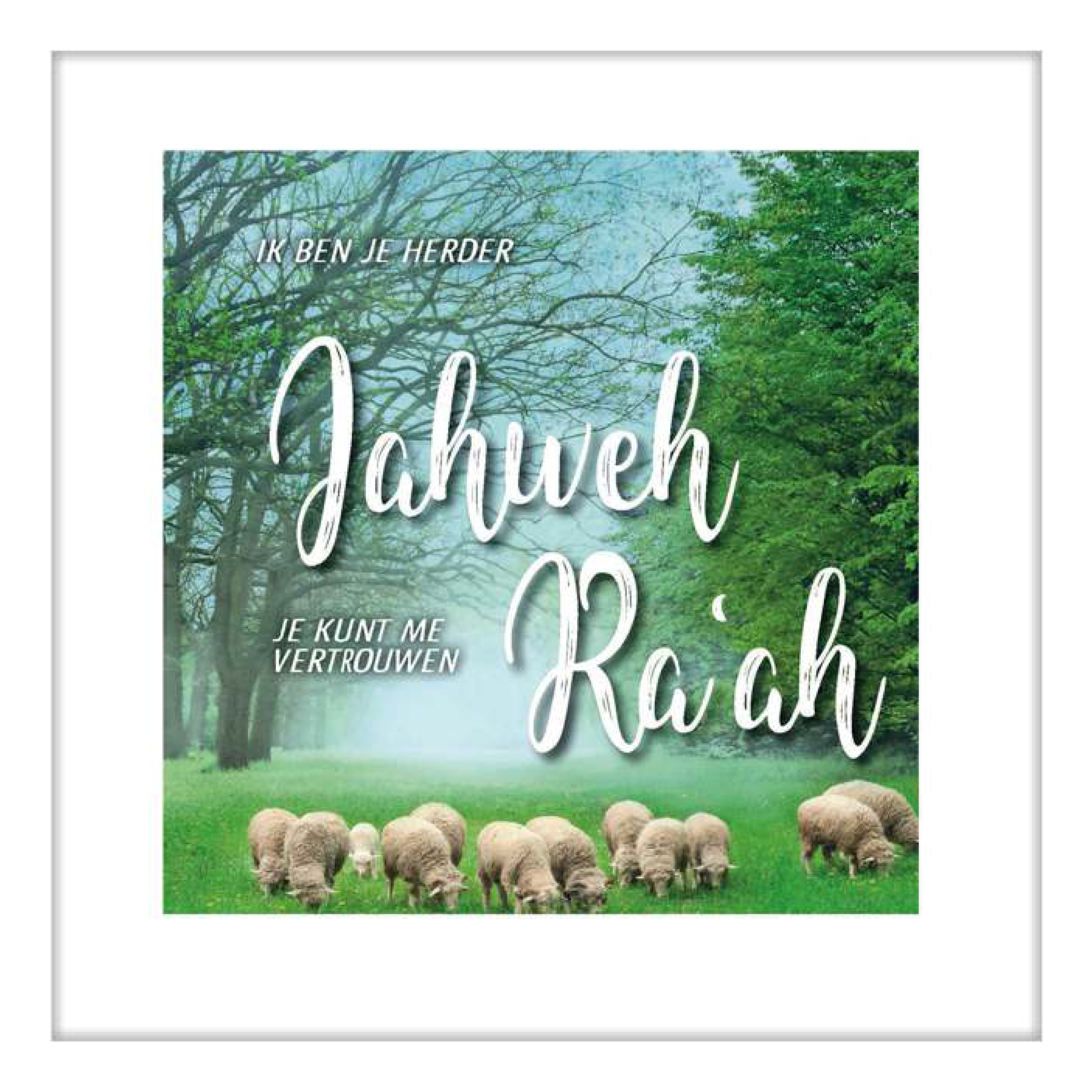 Christelijke ansichtkaart van ca 15×15 cm, uit de serie ‘Namen van God, gebaseerd op het boek ‘Ik ben’. De kaart kan aan de achterzijde beschreven en geadresseerd worden.