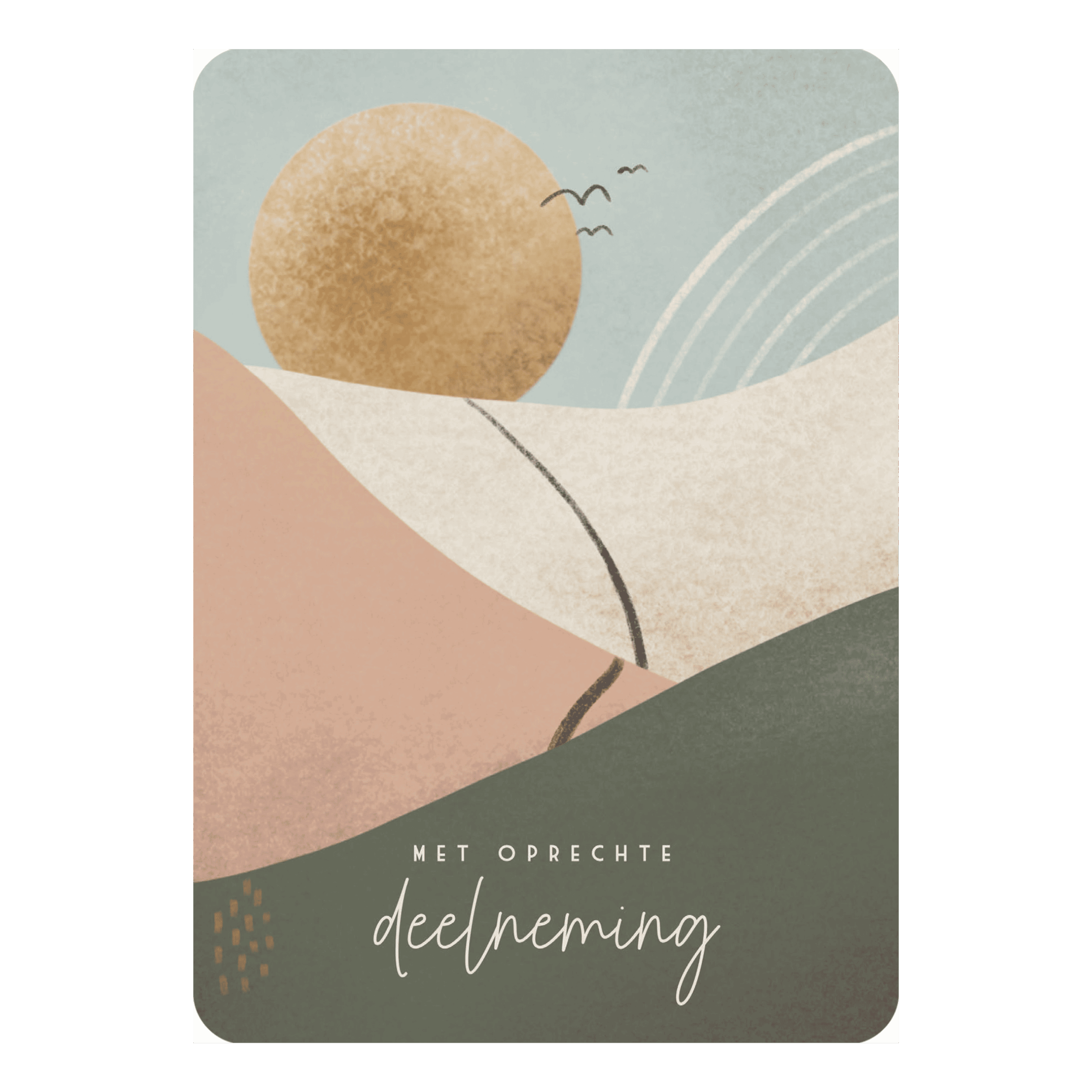 Deze kaart op A6-formaat wordt geleverd met envelop. De afgeronde hoeken geeft de kaart een prettige, vriendelijke uitstraling.