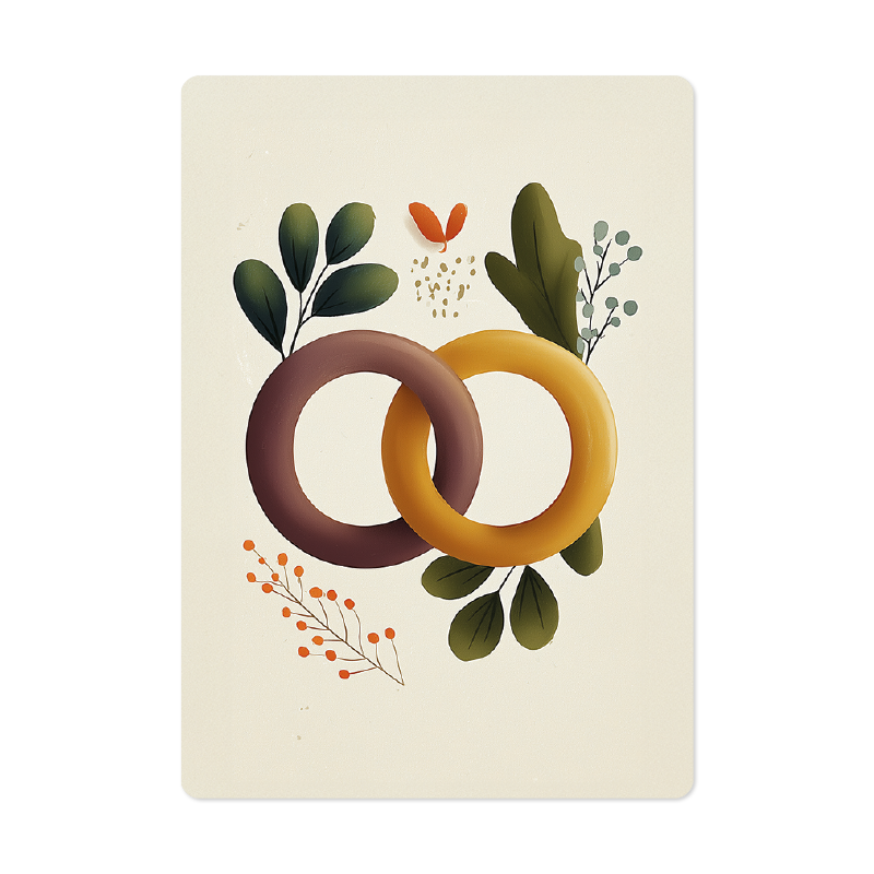 Deze kaart komt uit de Eigenwijs-molen en toont op de voorkant ringen met takjes eromheen. Op de achterkant staat de tekstverwijzing Spreuken 3:3: ‘Spreuken 3