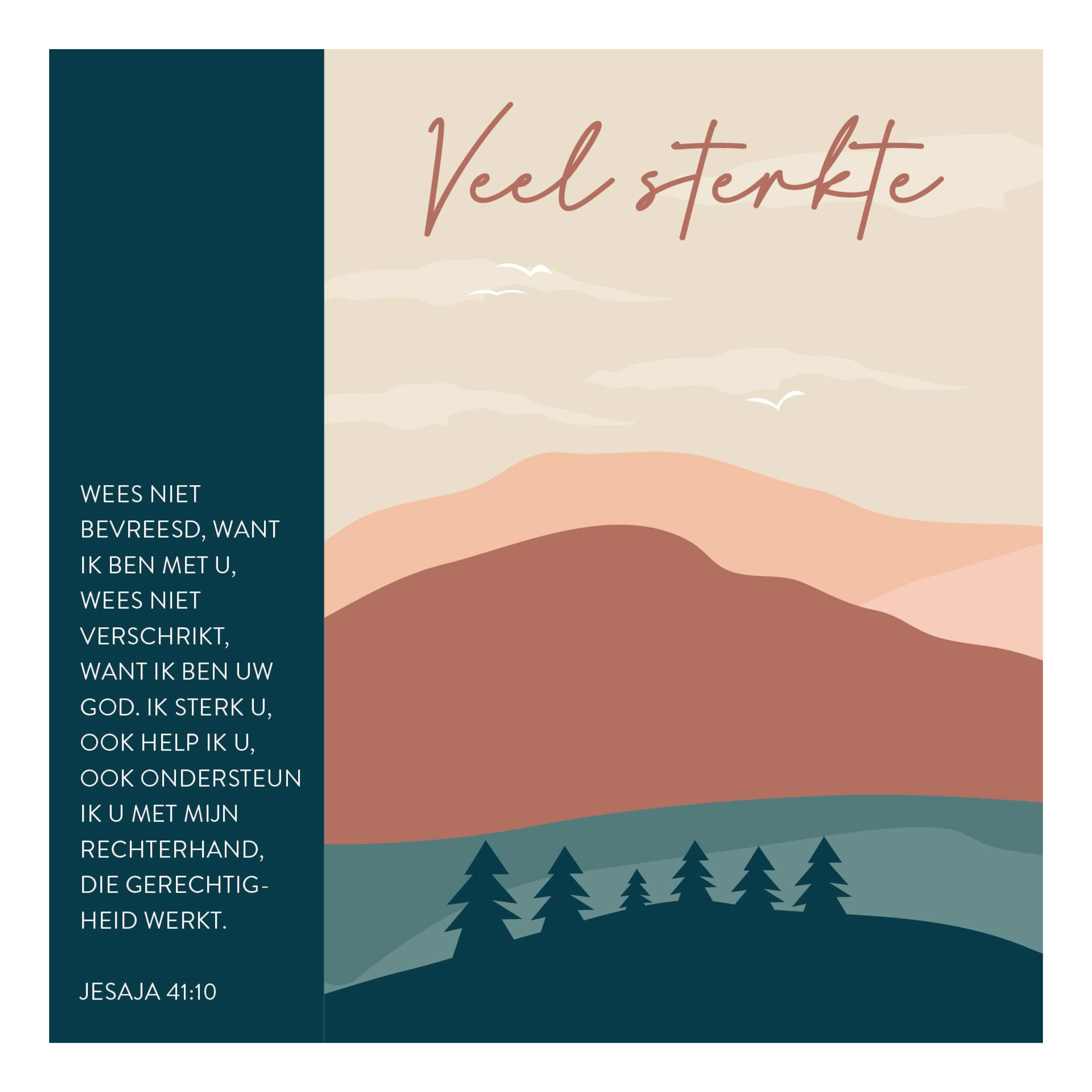 wees niet verschrikt, want Ik ben uw God. Ik sterk u, ook help Ik u, ook ondersteun Ik u met Mijn rechterhand, die gerechtigheid werkt.’ De kaart kan aan de blanco achterzijde beschreven worden. Wordt geleverd met envelop. Artikelnummer: MA56016