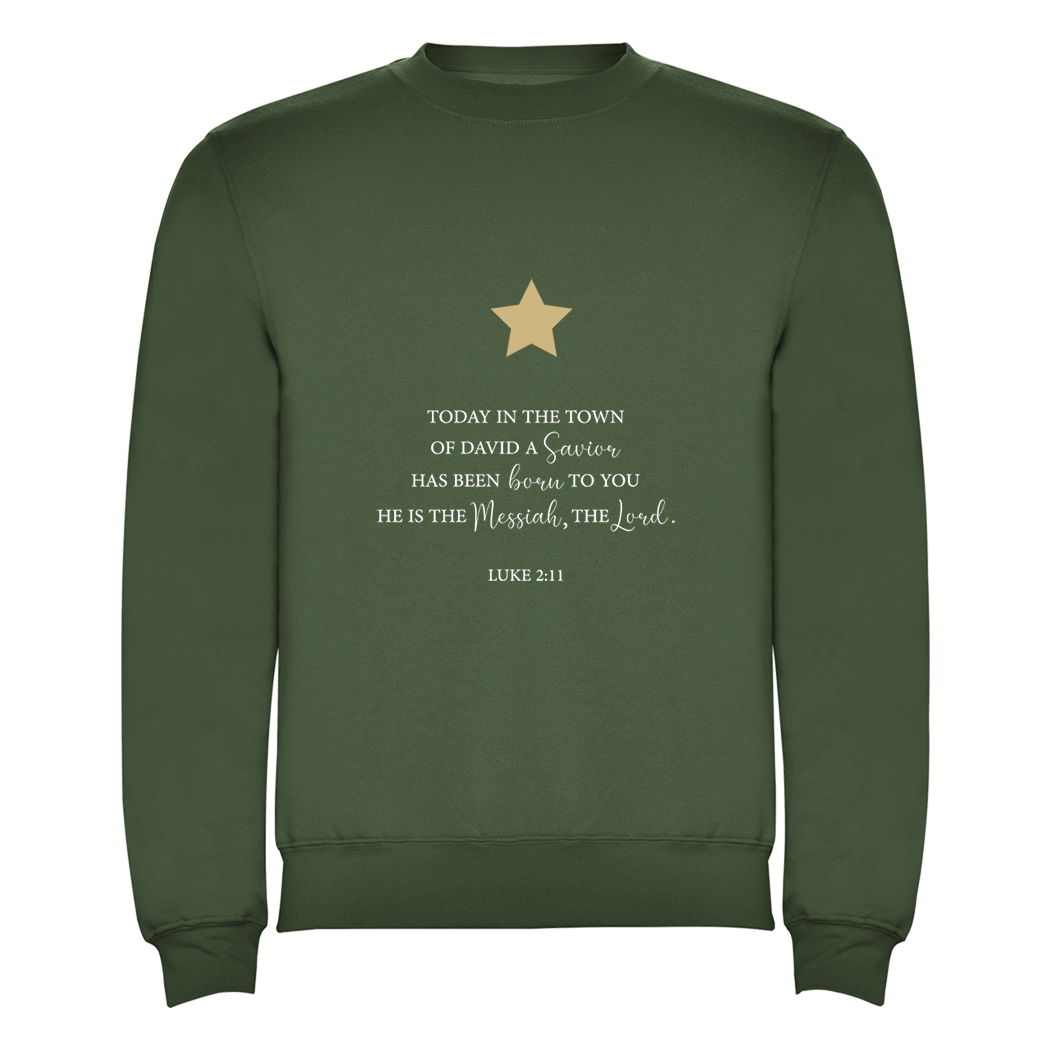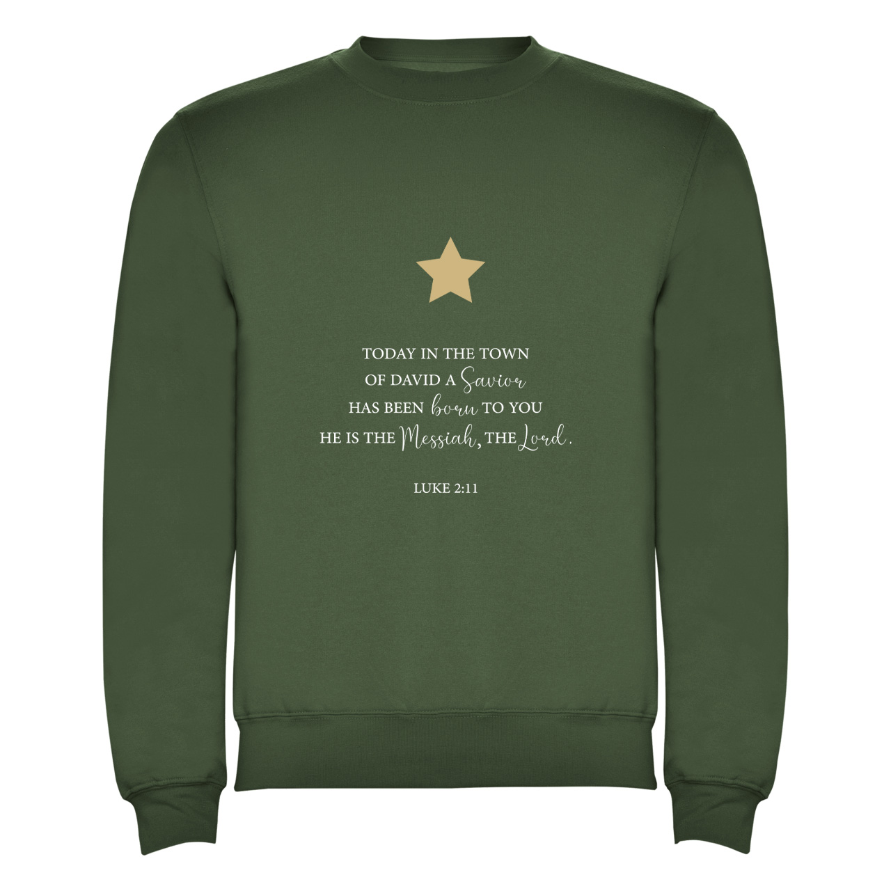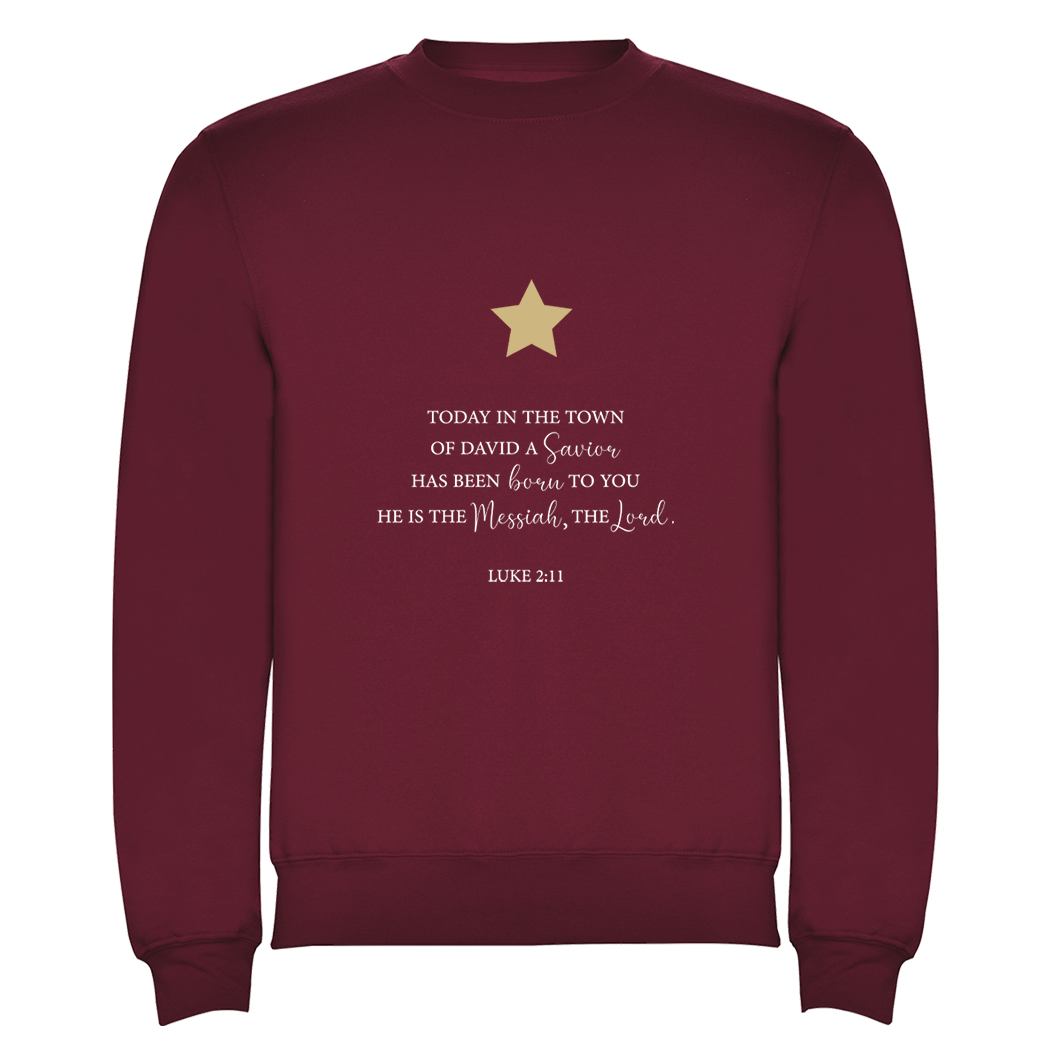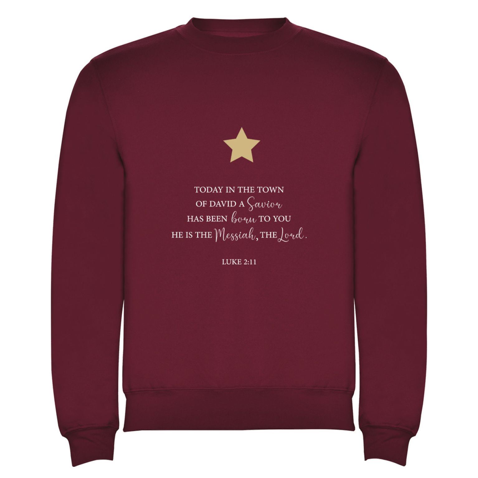 Met een grote print op de voorzijde met de inspirerende tekst uit Lucas 2:11 en een gouden ster straalt deze trui de ware kerstboodschap uit.