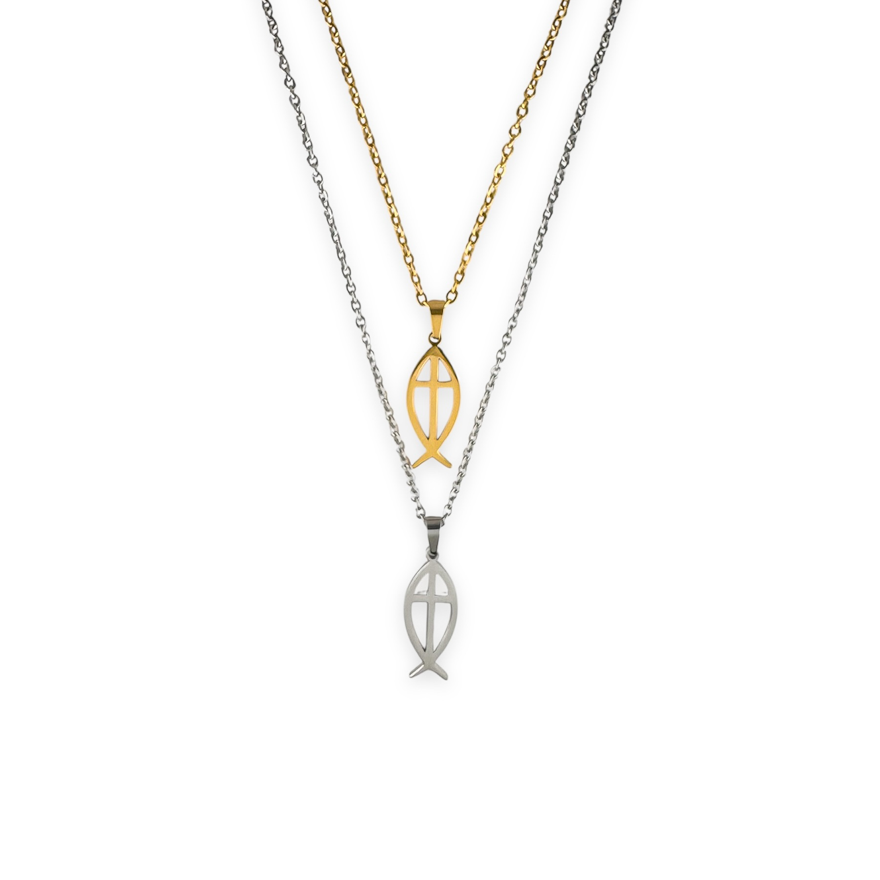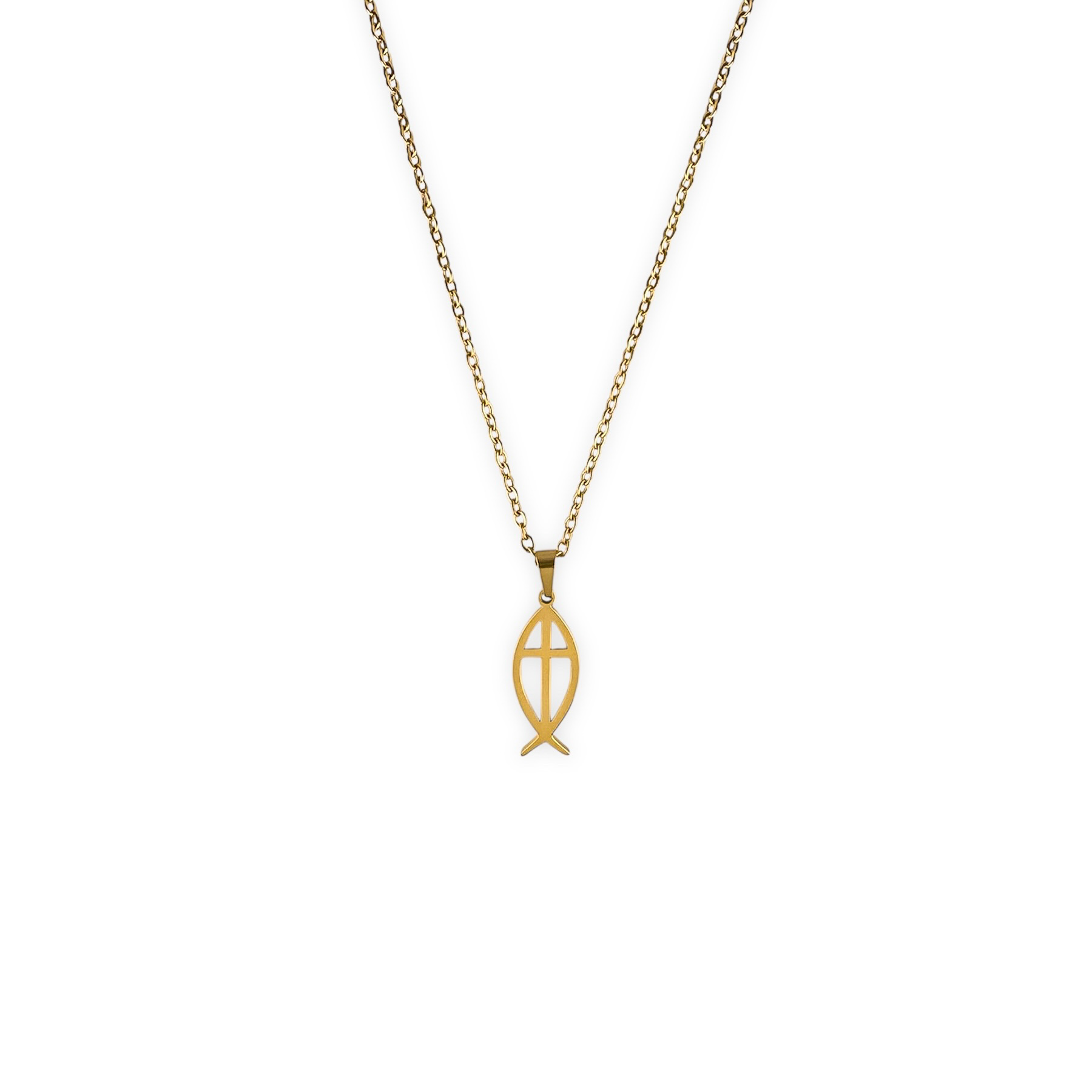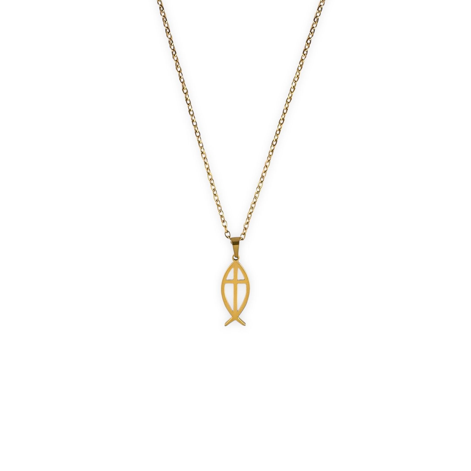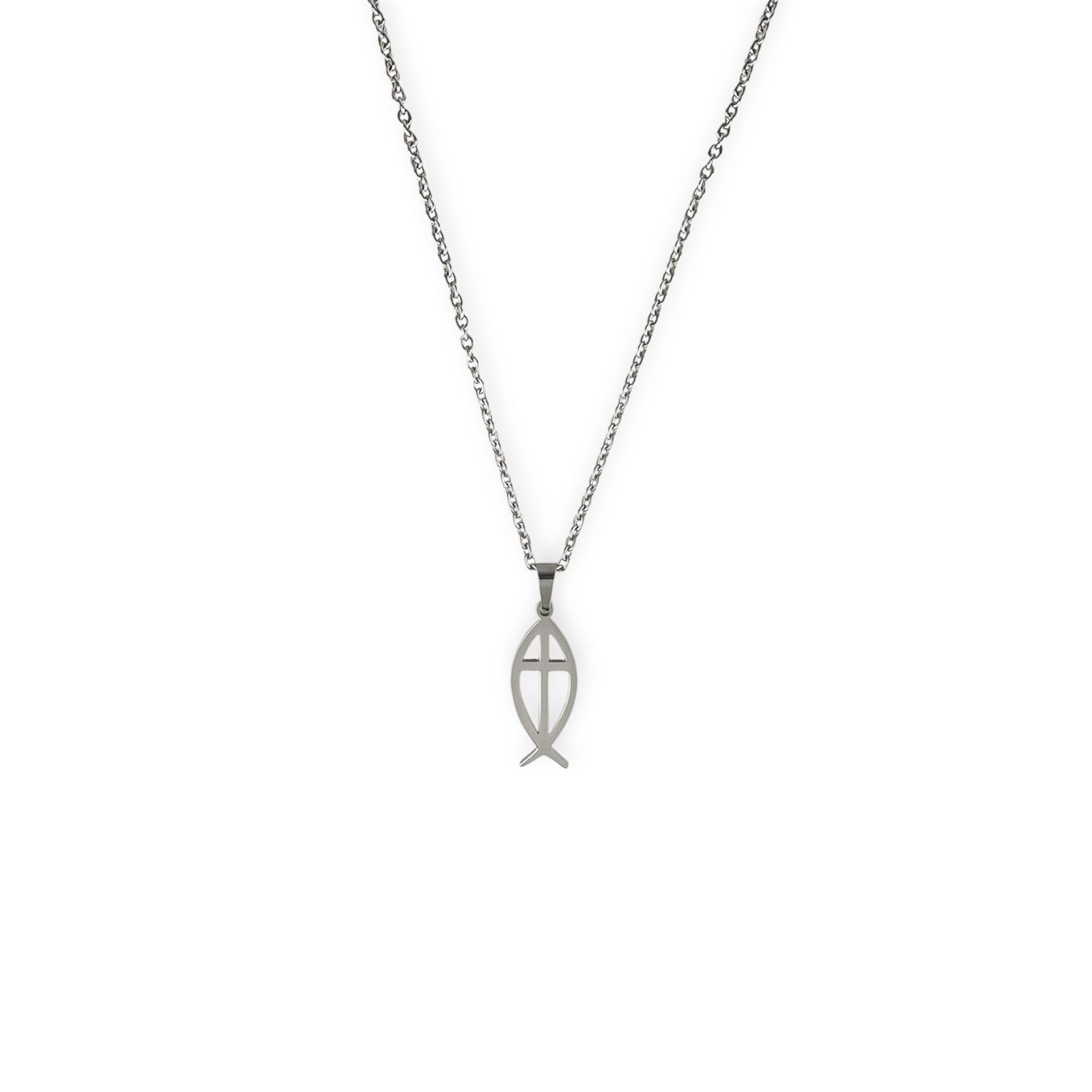 Deze christelijke ketting met een ichthusvisje en kruis is gemaakt van stainless steel en draagt een krachtige betekenis van geloof. De combinatie van twee christelijke symbolen maakt dit sieraad bijzonder om te dragen of cadeau te geven. Dit is hetzelfde type ketting als gedragen door verzetsstrijder en evangeliste Corrie ten Boom.