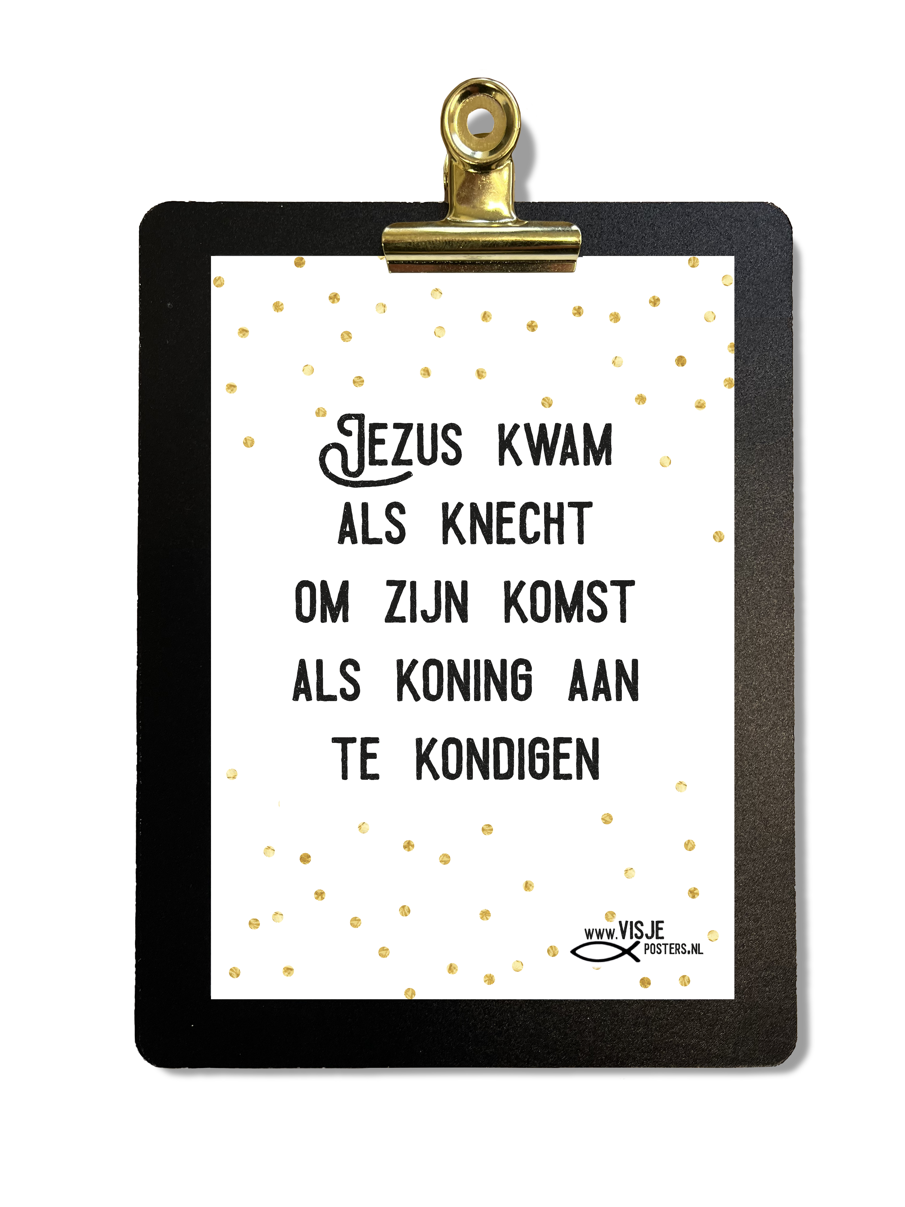 Zwart klembord met gouden klem en kerstkaart van Visje, perfect voor de feestdagen.