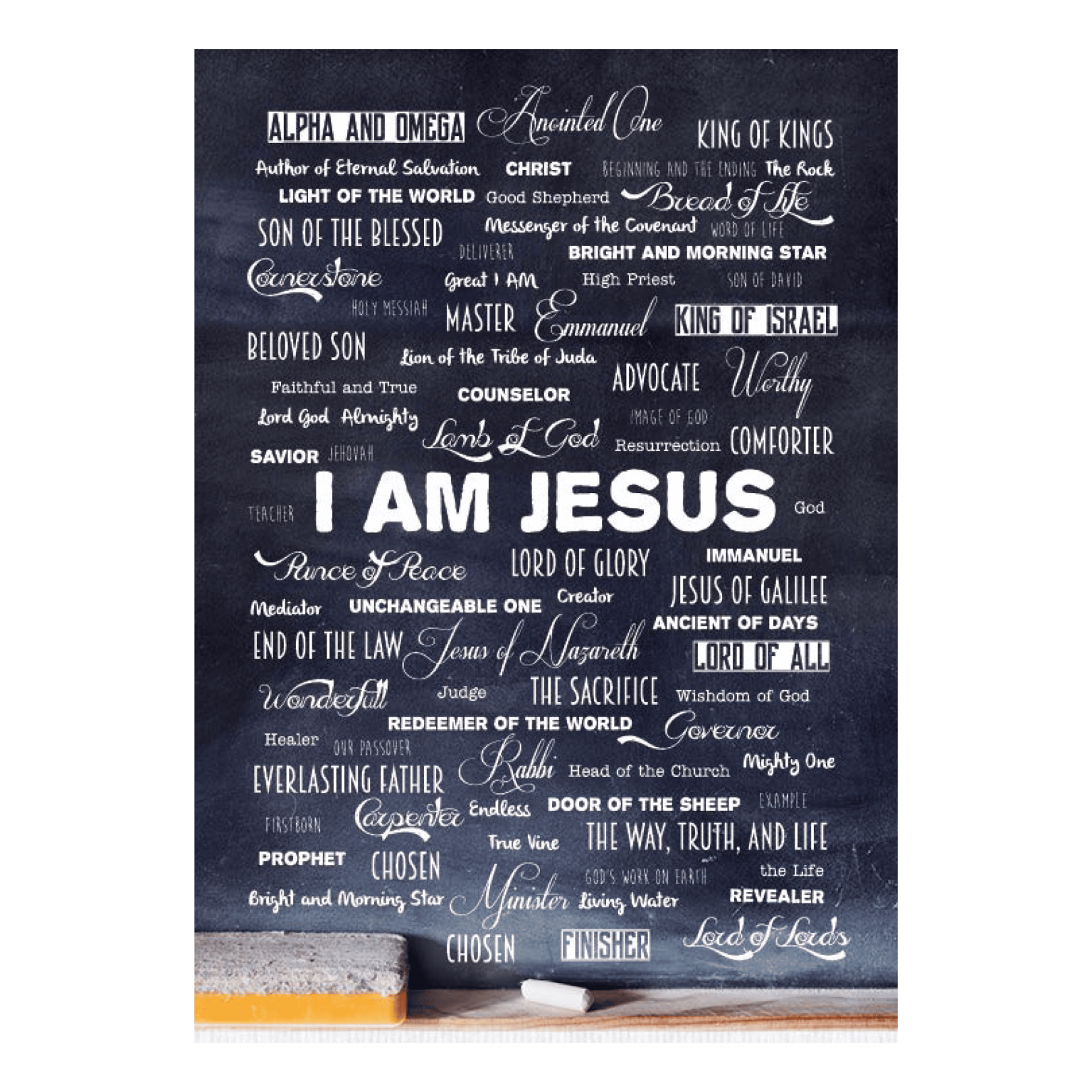 Miniposter met namen van Jezus. Afmeting ca. 20 x 30 cm