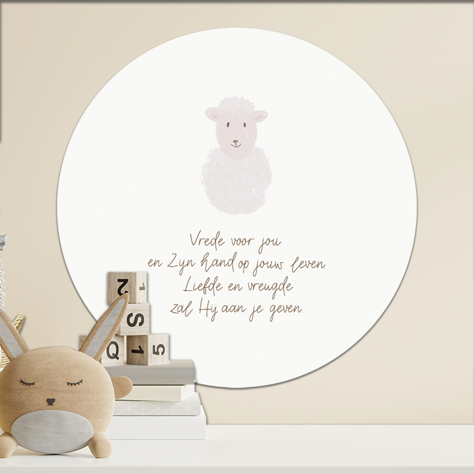 | Breng een boodschap van vrede en vreugde in huis met deze prachtige muurcirkel. Met de inspirerende tekst van Kinderopwekking 311: ‘Vrede voor jou en Zijn hand op jouw leven. Liefde en vreugde zal Hij aan je geven.’ en een schattig schaapje, straalt deze moderne zegenbede rust en geborgenheid uit. Dankzij de neutrale kleuren past de muurcirkel perfect in elk interieur. |