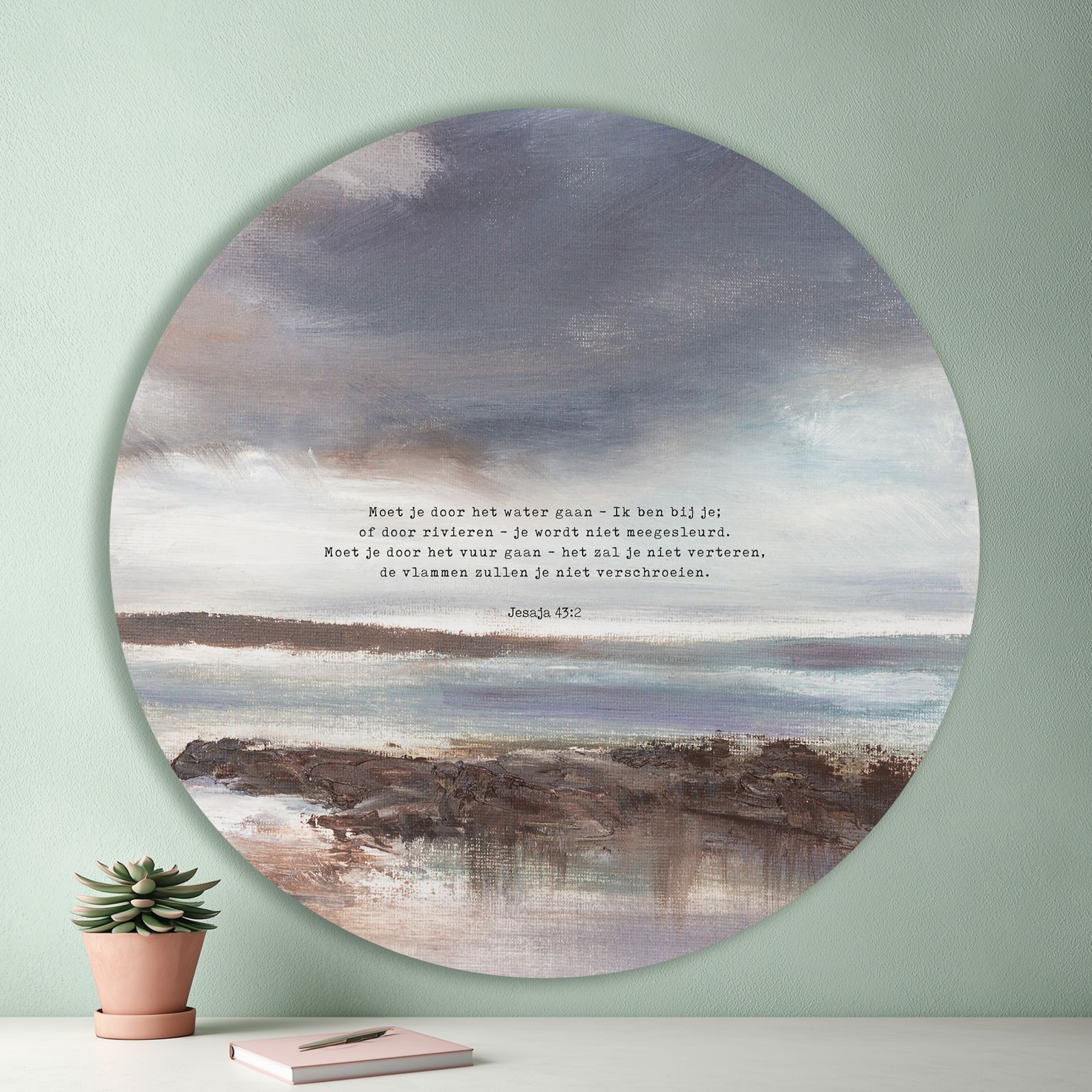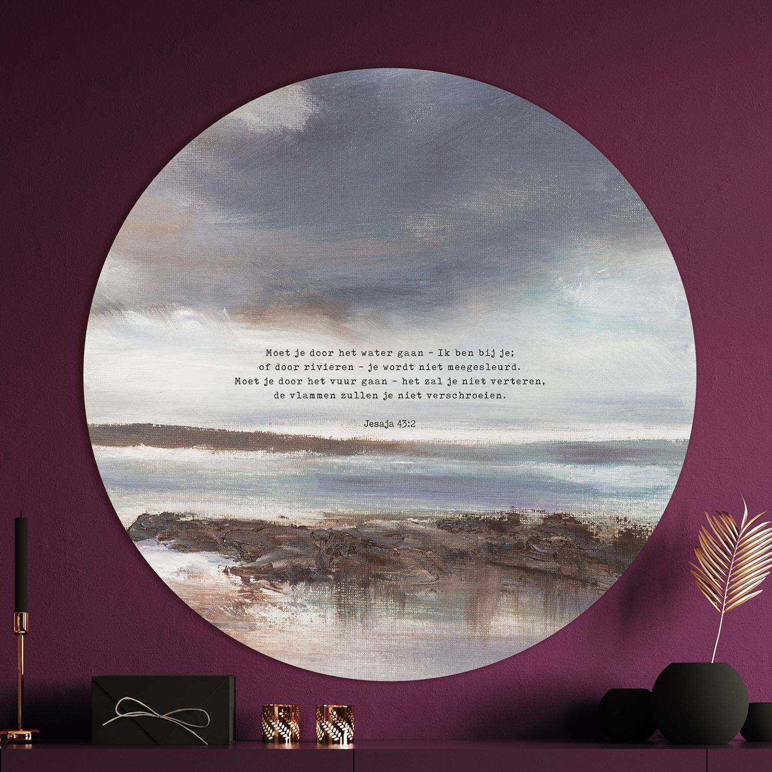 Op deze cirkel staat de bijbeltekst uit Jesaja 43:2: ‘Moet je door het water gaan – Ik ben bij je; of door rivieren – je wordt niet meegesleurd. Moet je door het vuur gaan – het zal je niet verteren, de vlammen zullen je niet verschroeien.’