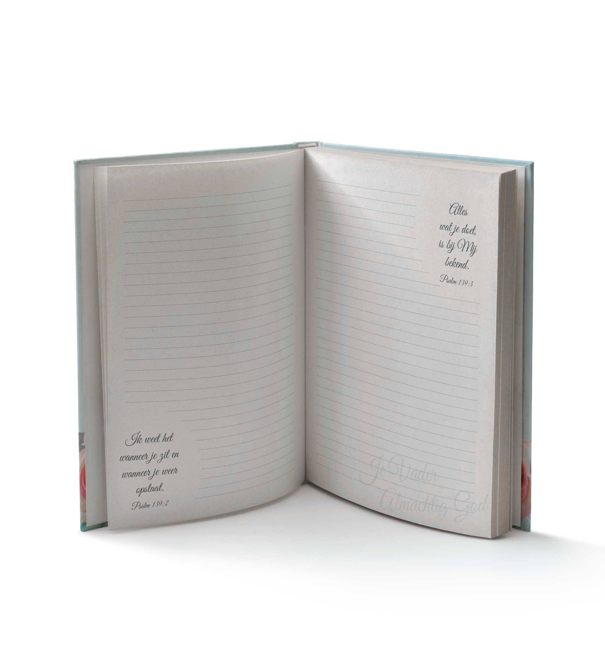 Op elke pagina in de hoek een tekst uit de Vaders liefdesbrief