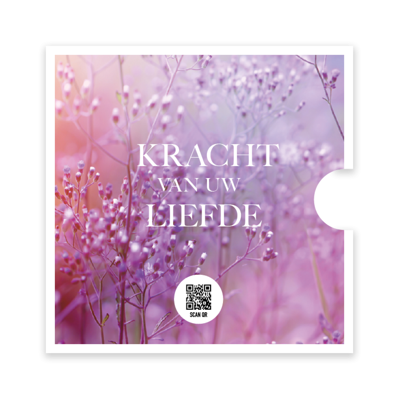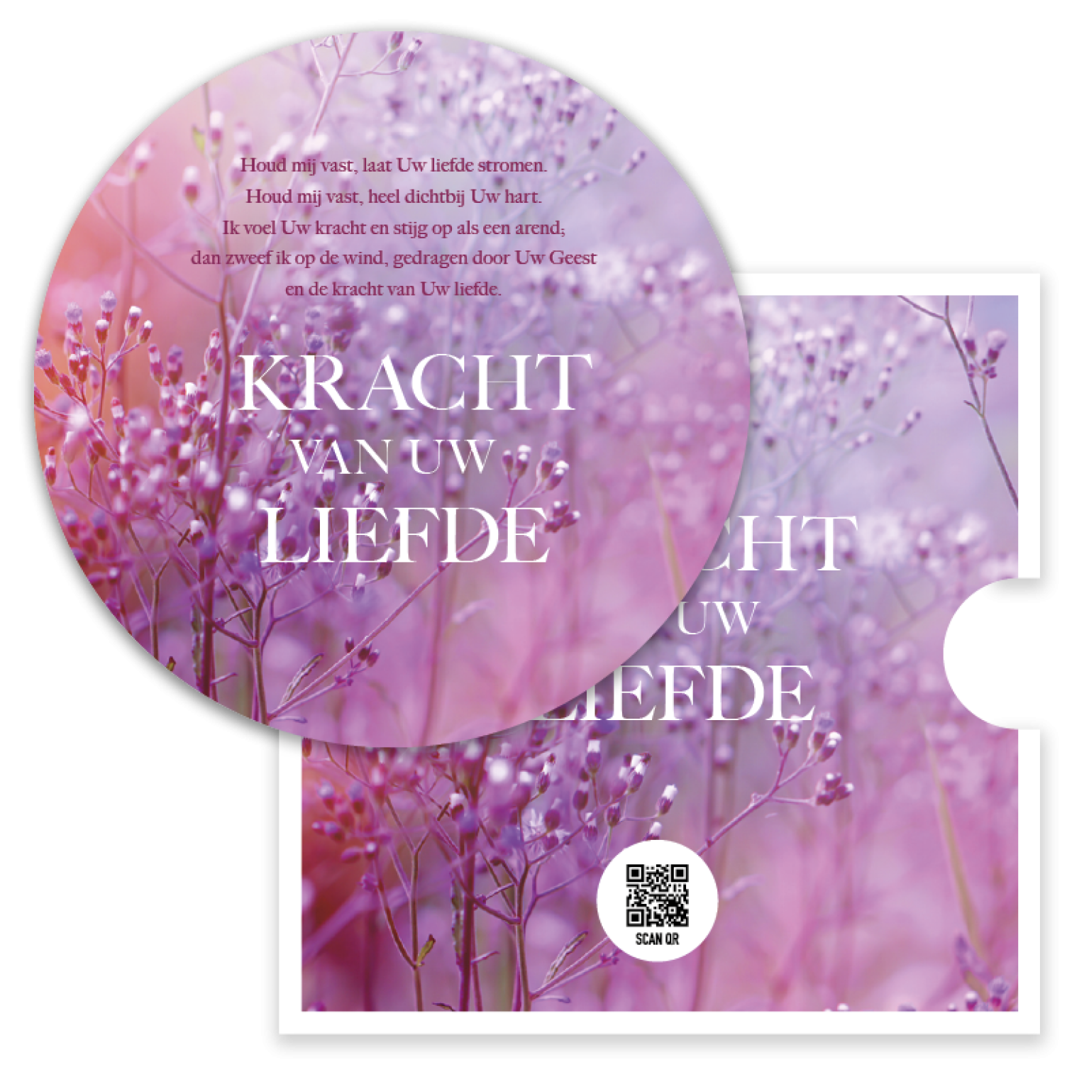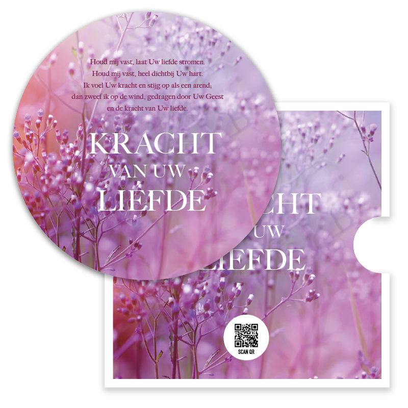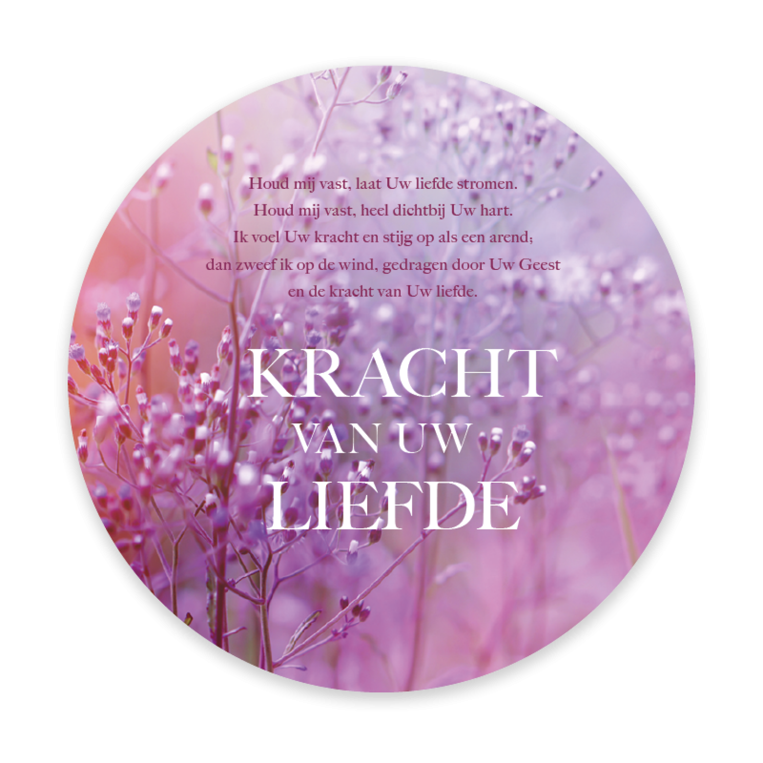 Prachtige ronde fotokaart met de tekst ‘Kracht van Uw liefde’ en een achtergrond van zachte paarse bloemetjes. Een waardevolle kaart vol zegen en bemoediging om aan iemand cadeau te doen. De kaart bevat een QR-code die direct leidt naar het muziekbestand van Opwekking 488, zodat de ontvanger het lied kan beluisteren en bemoedigd mag worden.