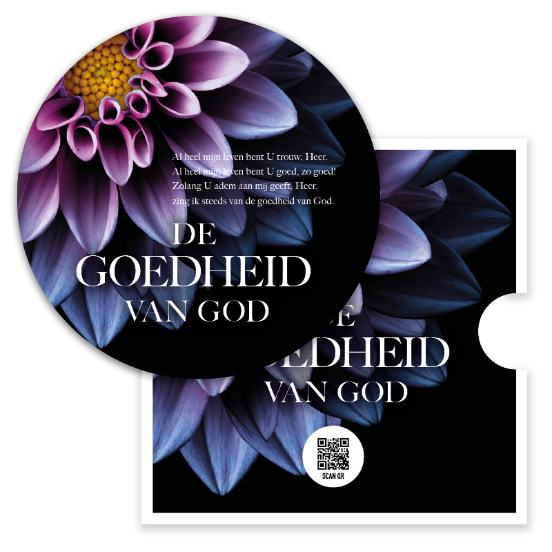 Prachtige ronde fotokaart met de tekst ‘De goedheid van God’ en een sfeervolle achtergrond van een paarse bloem. Een kaart vol bemoediging en geloof, voorzien van een handige QR-code die direct leidt naar het muziekbestand van Opwekking 849. Perfect om iemand mee te troosten of te inspireren.