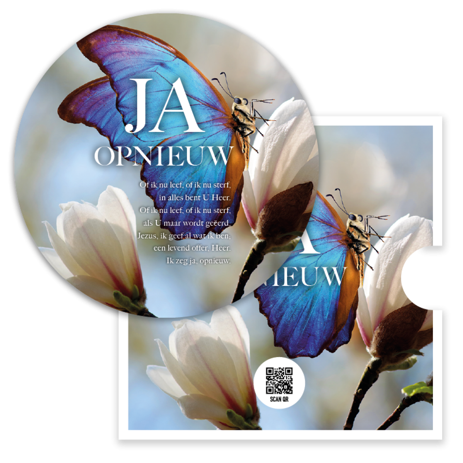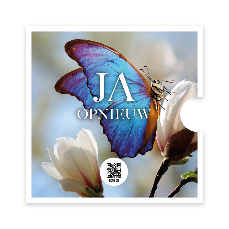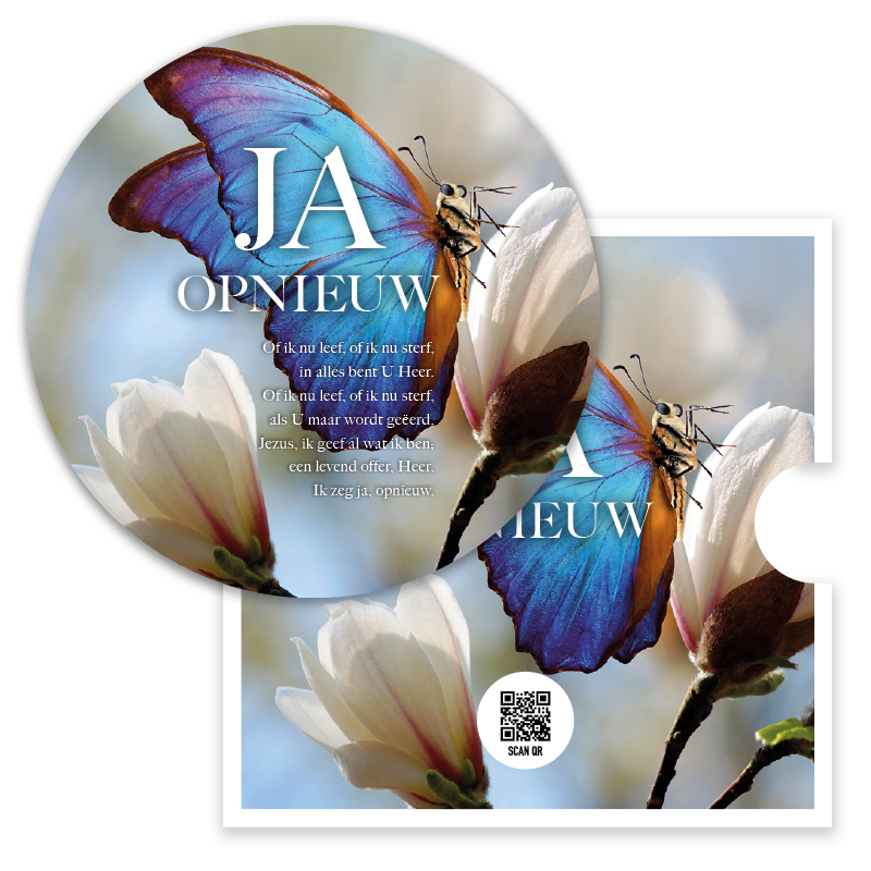 Een kaart ter bemoediging met een extra bijzondere toevoeging: een QR-code die direct leidt naar het muziekbestand van Opwekking 906 ‘Ja opnieuw’.