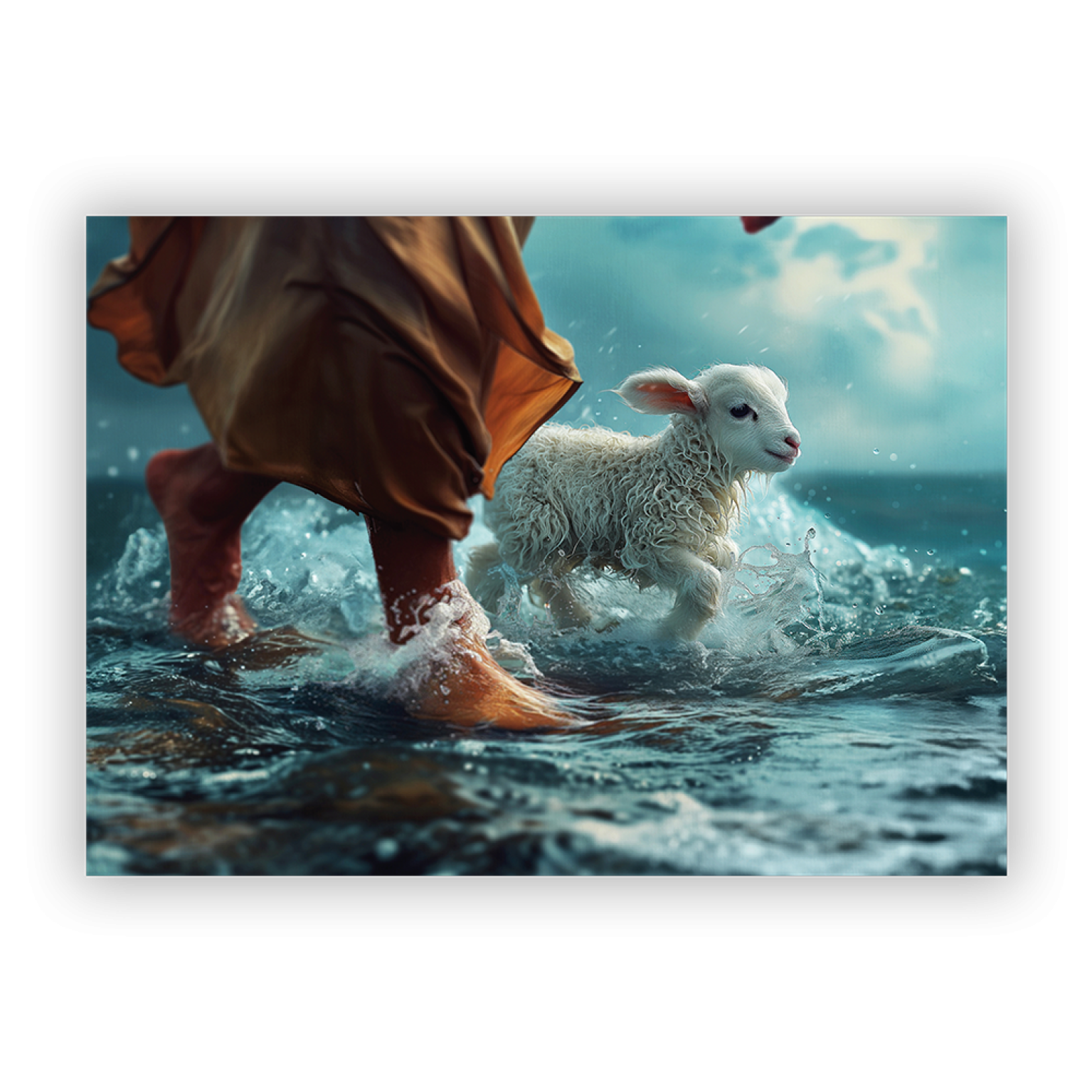 Dit cadeaubord brengt heel subtiel de boodschap van de Goede Herder.