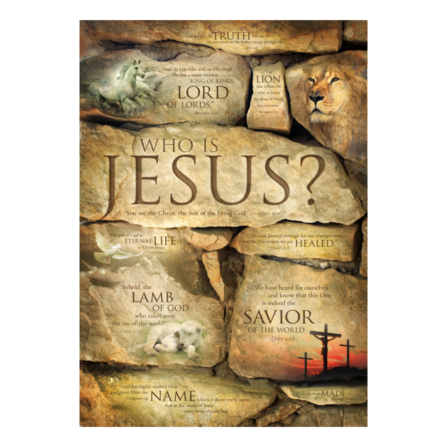 Poster met namen en beschrijvingen van Jezus