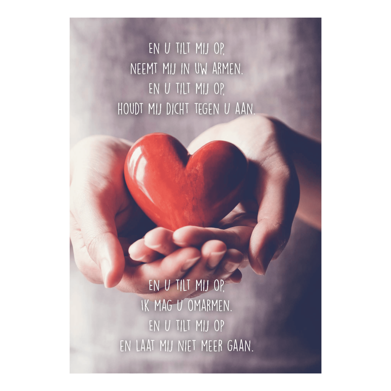 En U tilt mij op, ik mag U omarmen. En U tilt mij op en laat mij nooit meer gaan.”