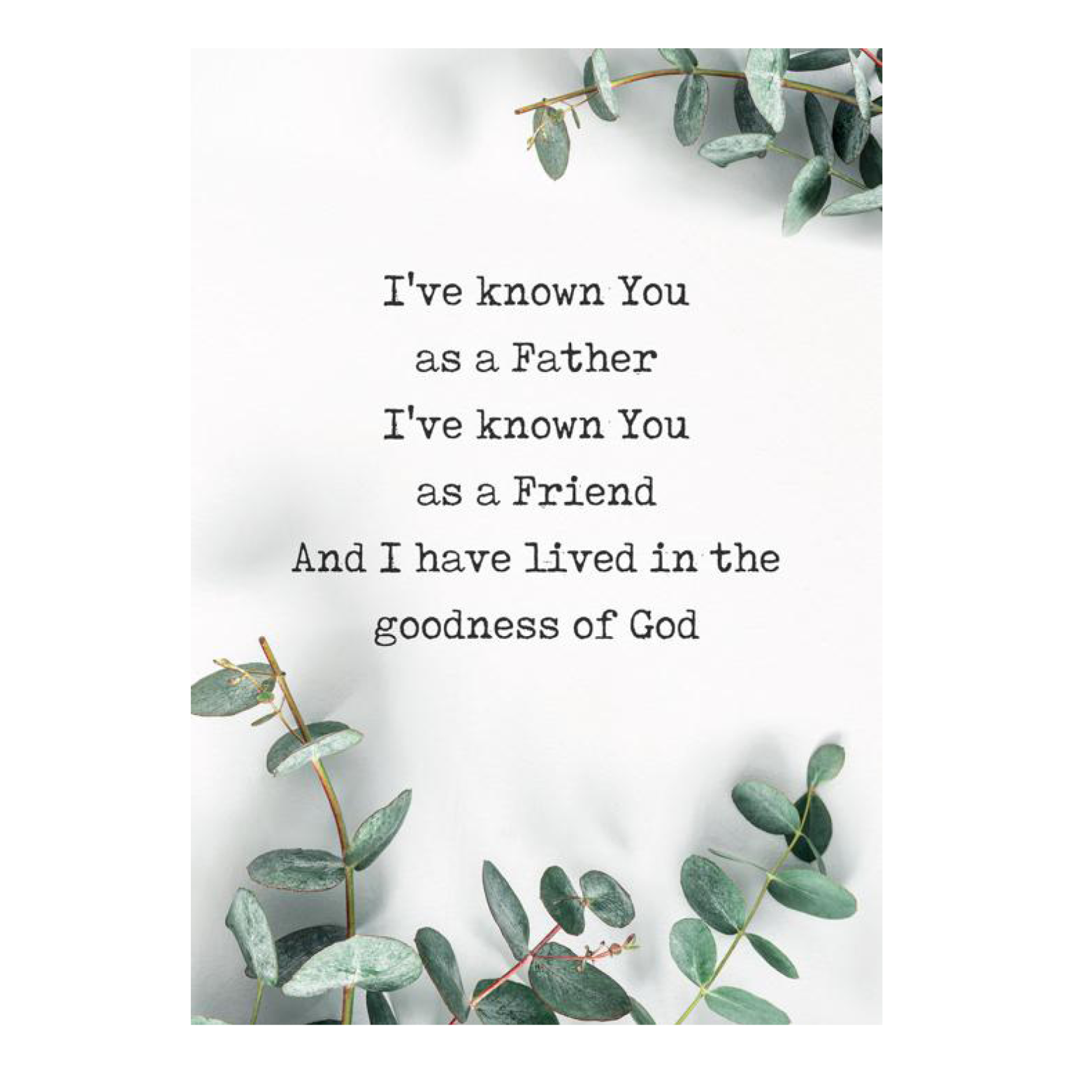 and I have lived in the goodness of God”