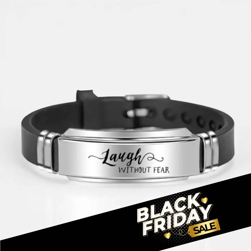 Stoere silliconenarmband met de inspirerende tekst: ‘Laugh without fear’. Deze armband moedigt je aan om van het leven te genieten; te lachen zonder angst en schaamte.