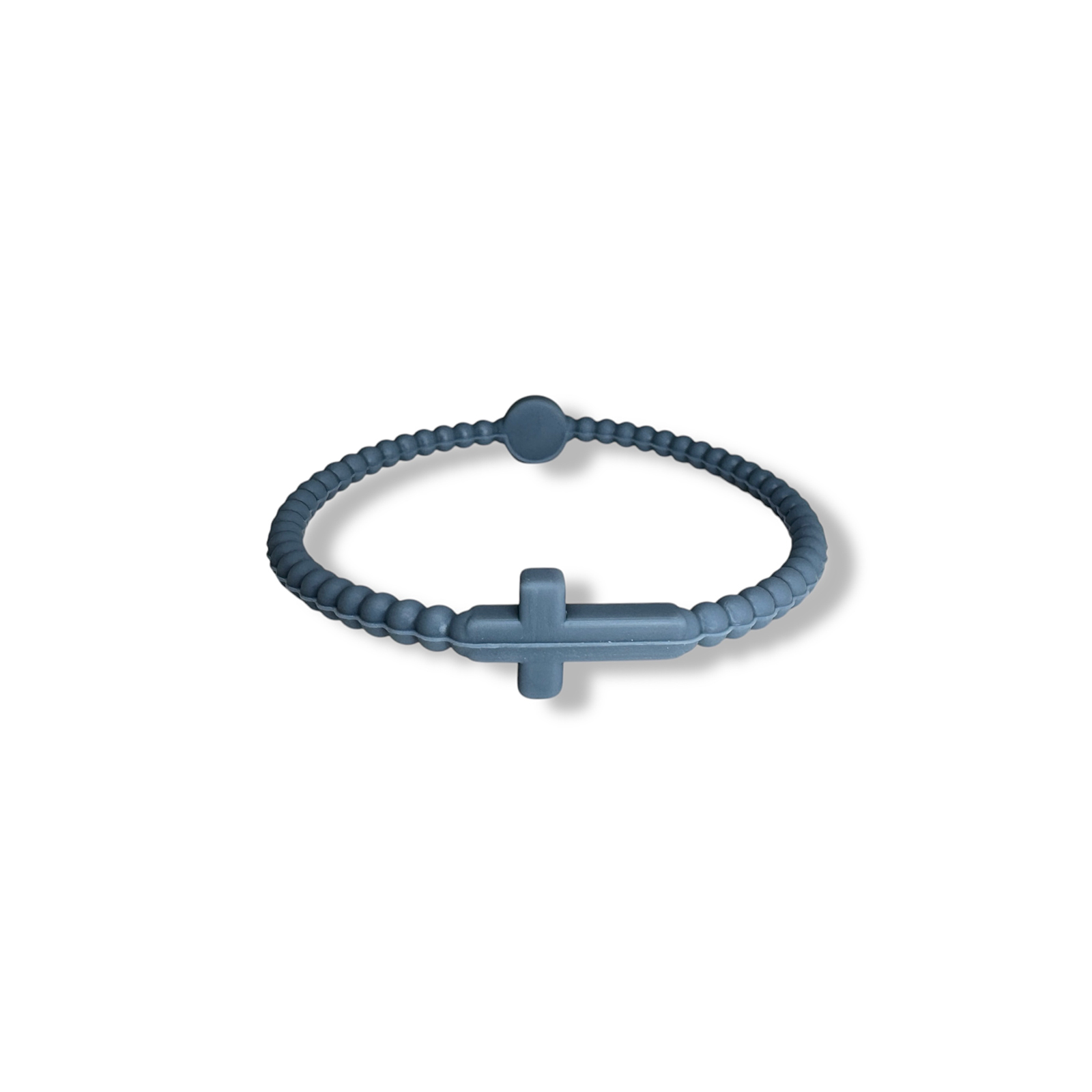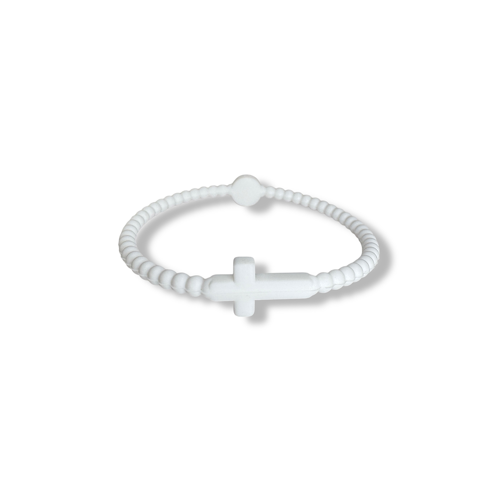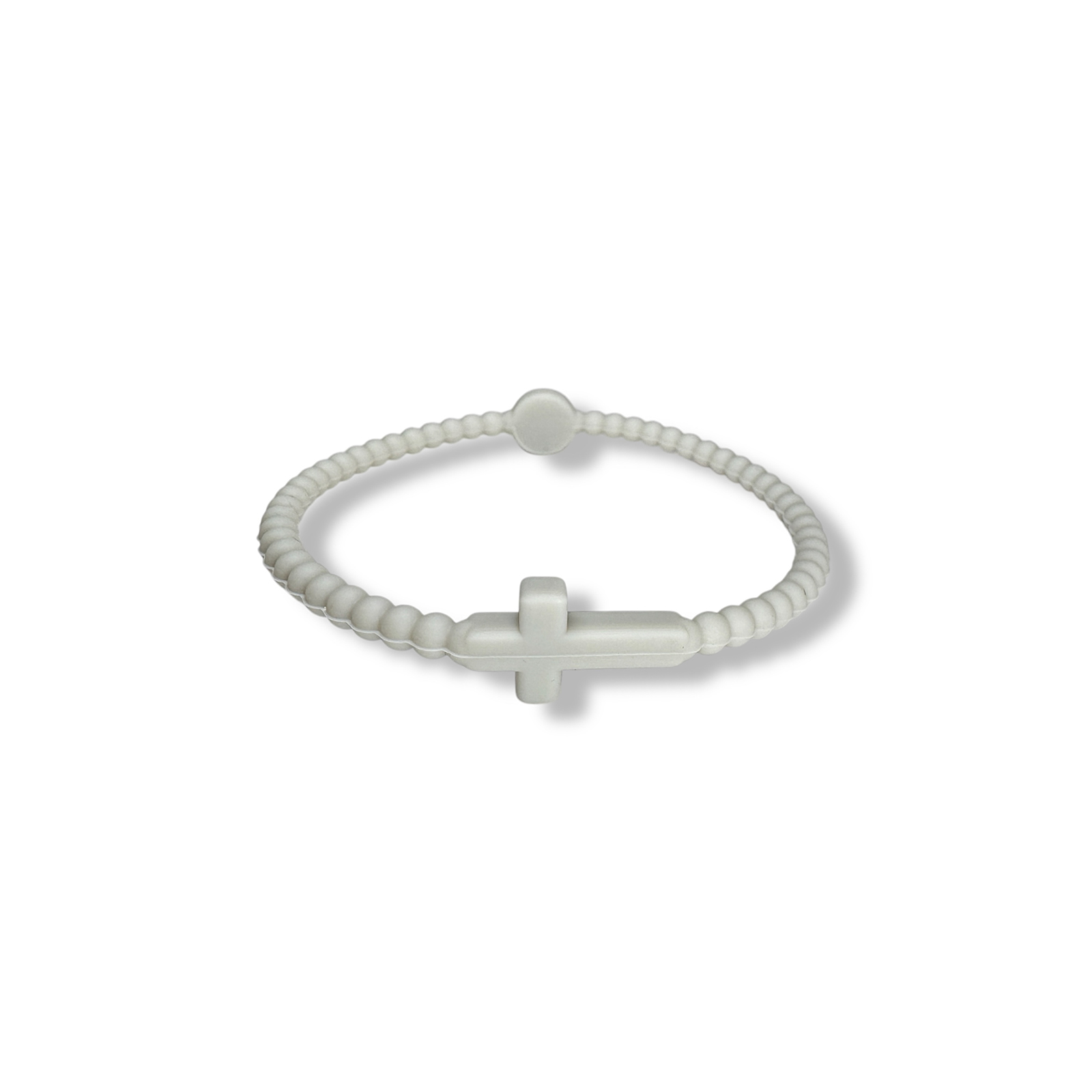 Een vrolijk armbandje met een sierlijk kruisje, verkrijgbaar in allerlei frisse kleurtjes. Gemaakt van soepel siliconen voor een perfecte pasvorm en ultiem draagcomfort!
