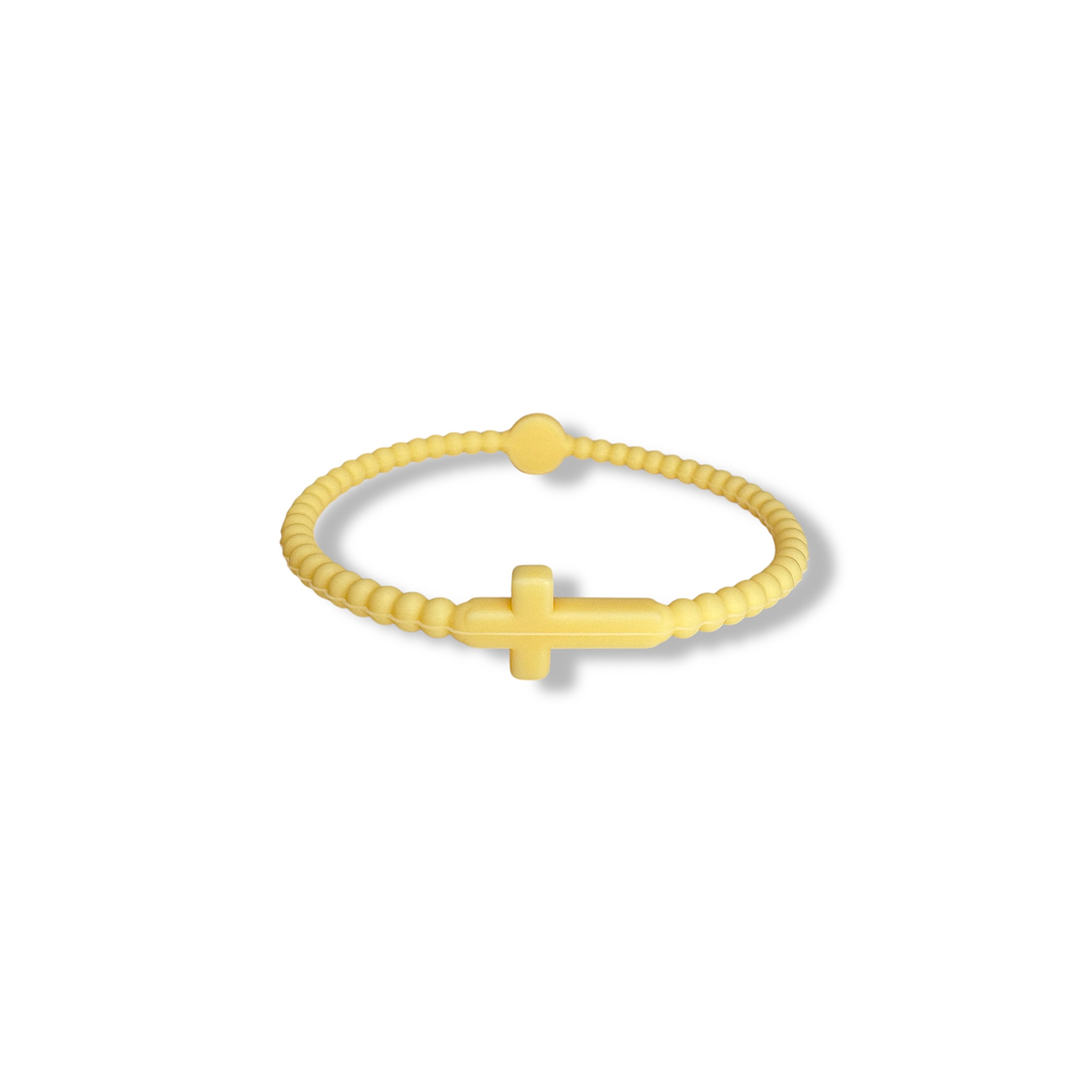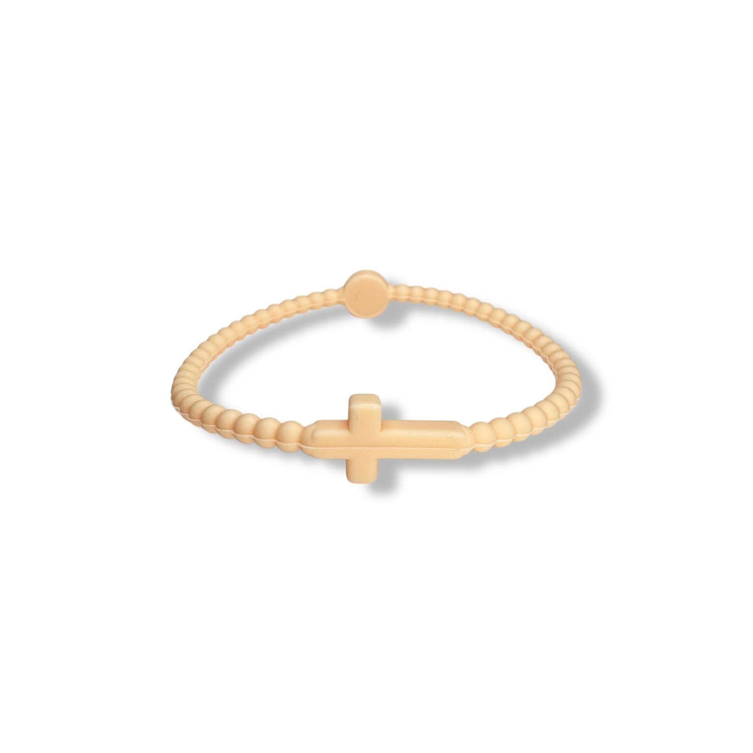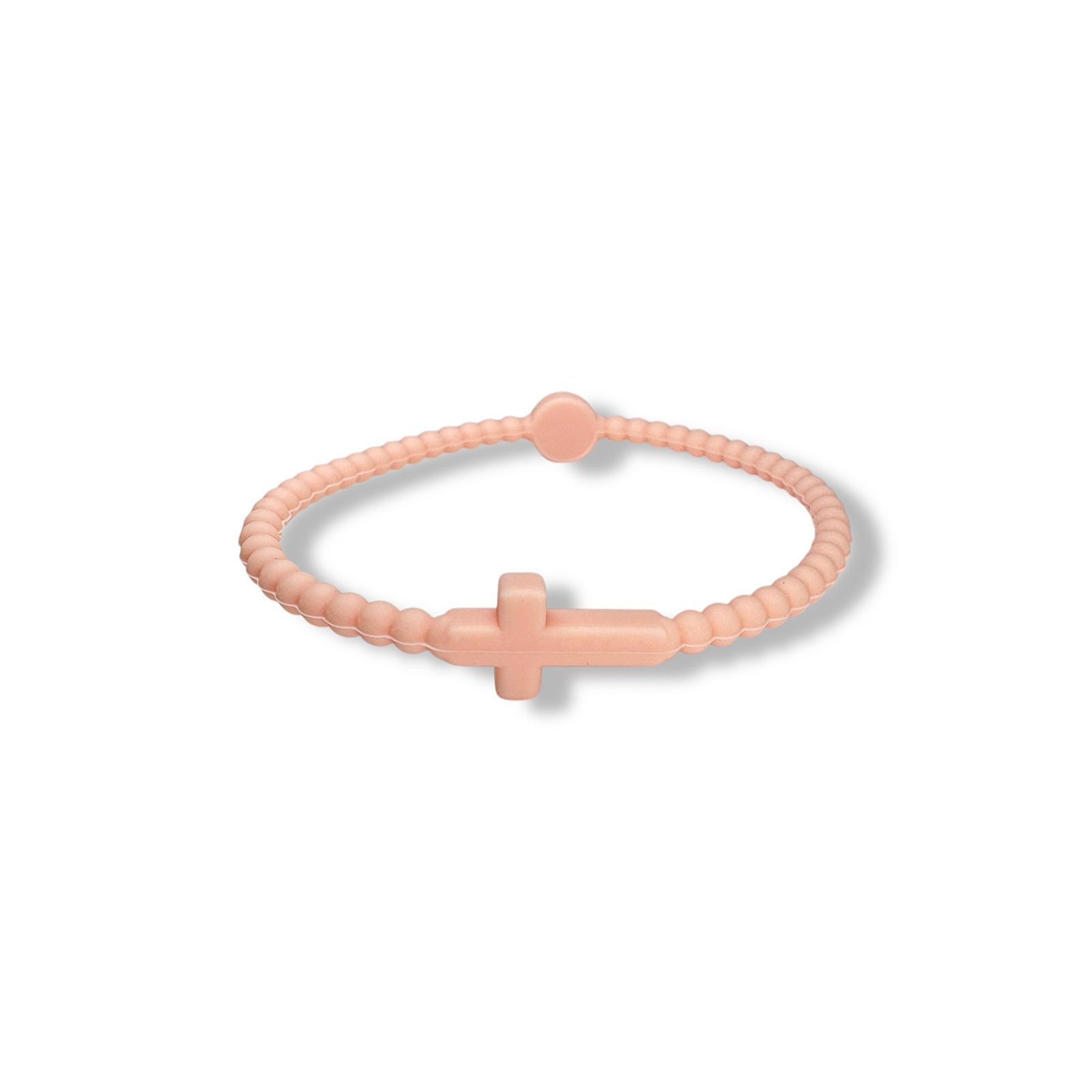 Een vrolijk armbandje met een sierlijk kruisje, verkrijgbaar in allerlei frisse kleurtjes. Gemaakt van soepel siliconen voor een perfecte pasvorm en ultiem draagcomfort!