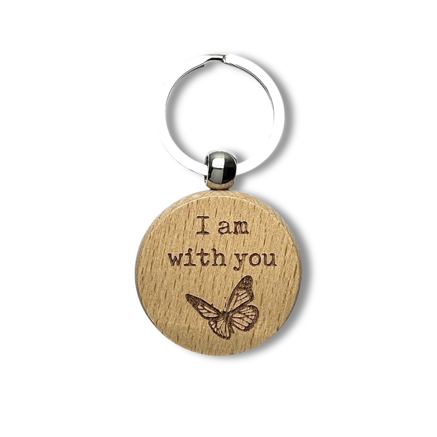 Leuke houten sleutelhanger met de tekst ‘I am with you’.