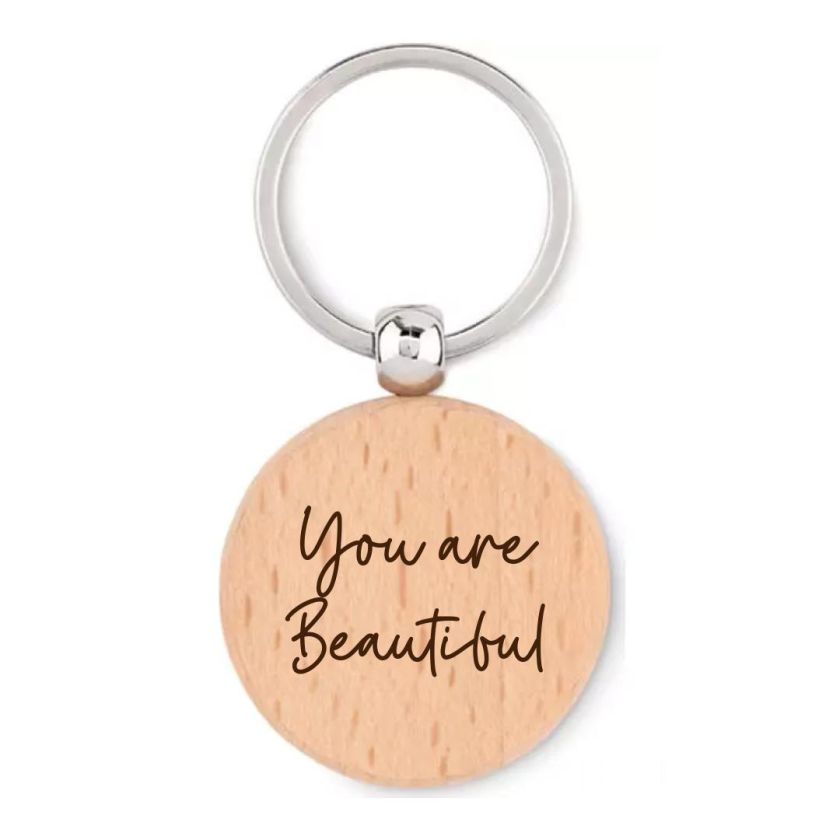 Leuke houten sleutelhanger met de tekst ‘You are beautiful’.