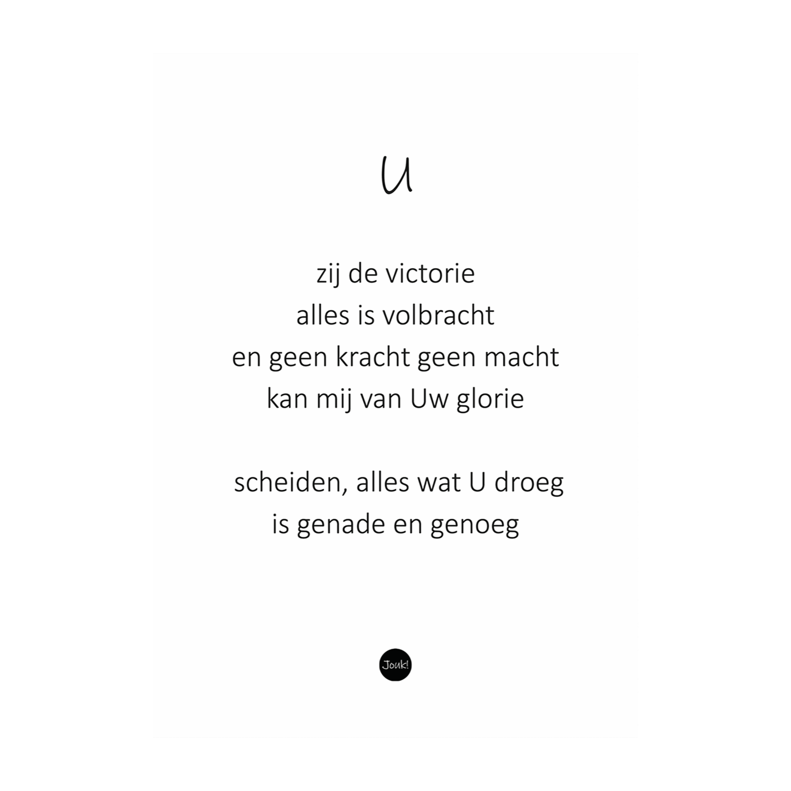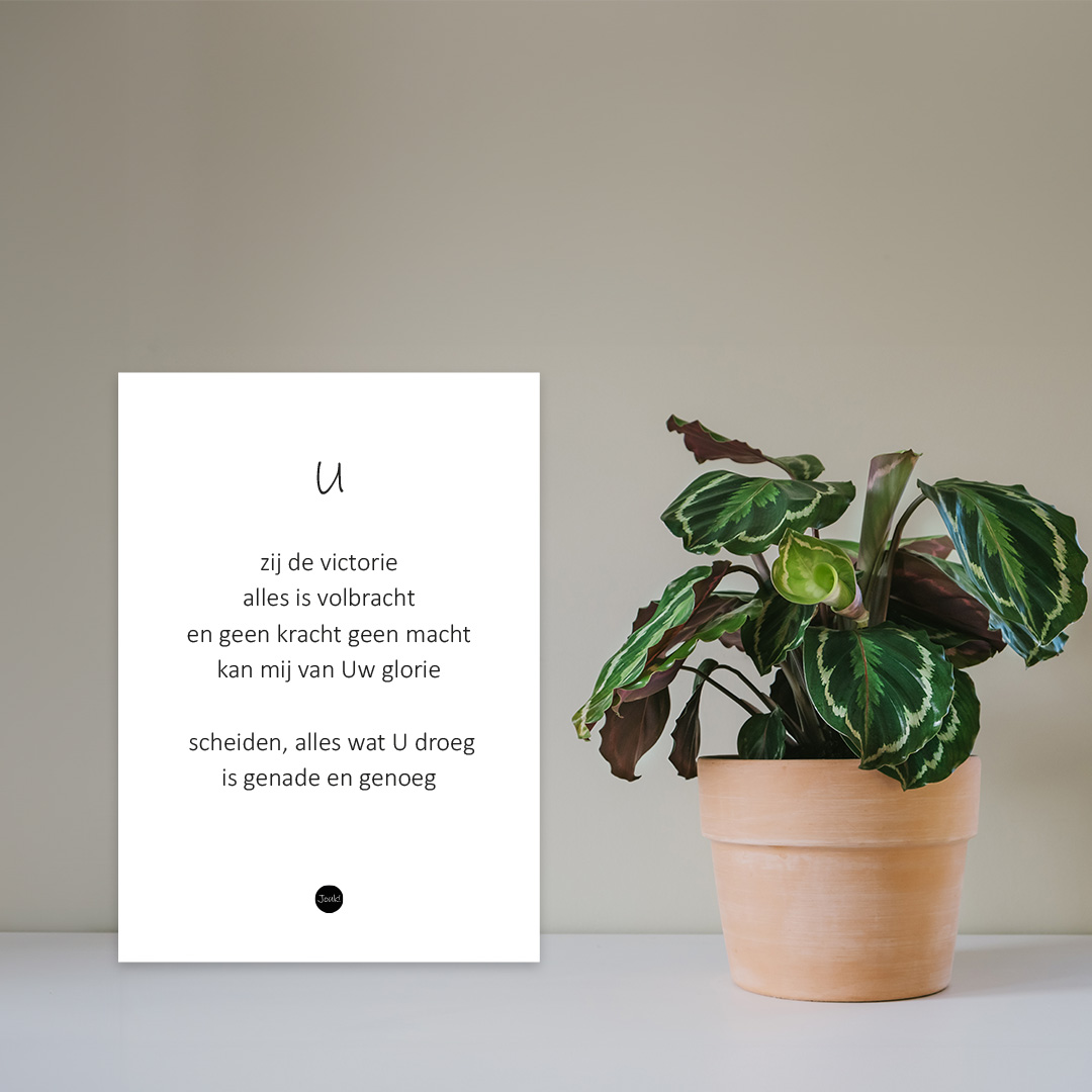 Deze kaart in A6-formaat wordt geleverd met envelop. Door het rustige design in zwart en wit, gaat alle aandacht naar de woorden van hoop, liefde en bemoediging.Onderdeel van de kaartenserie Knipoogje!
