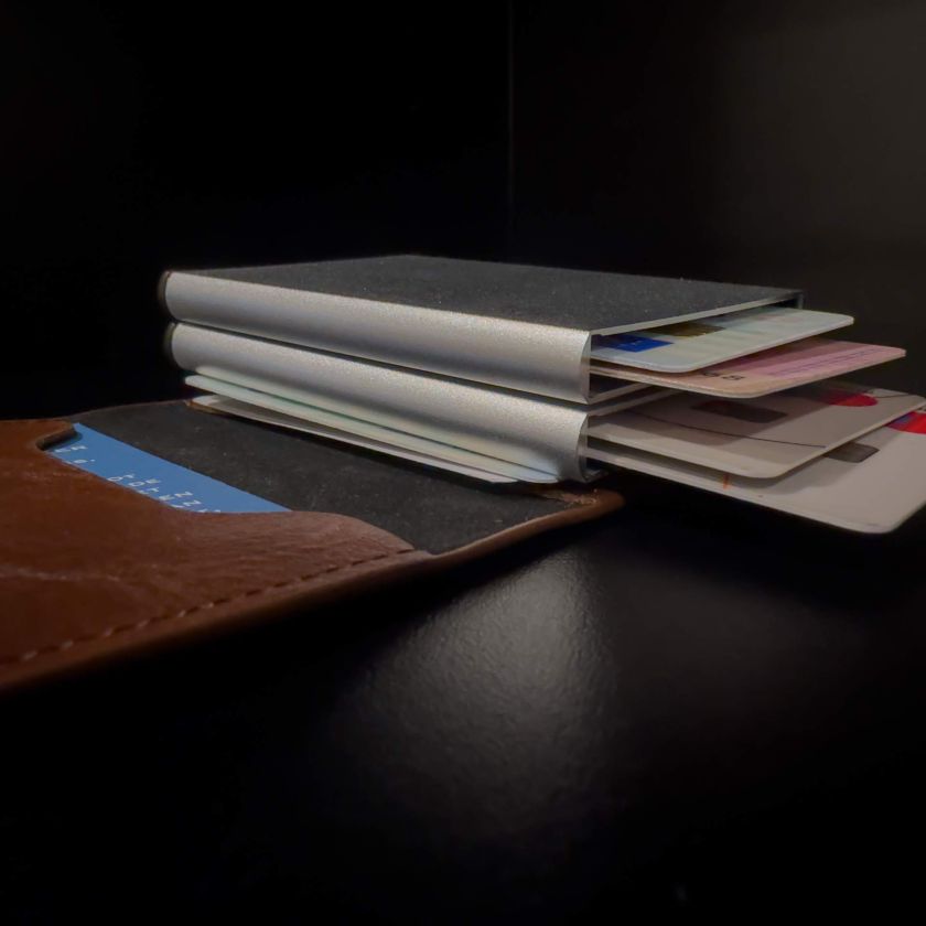 Handige pasjeshouder met 2 vakjes voor creditcards, betaalpasjes en andere pasjes. Met meegeleverd kaartje binnenin met de tekst uit Jeremia 17:7-8.