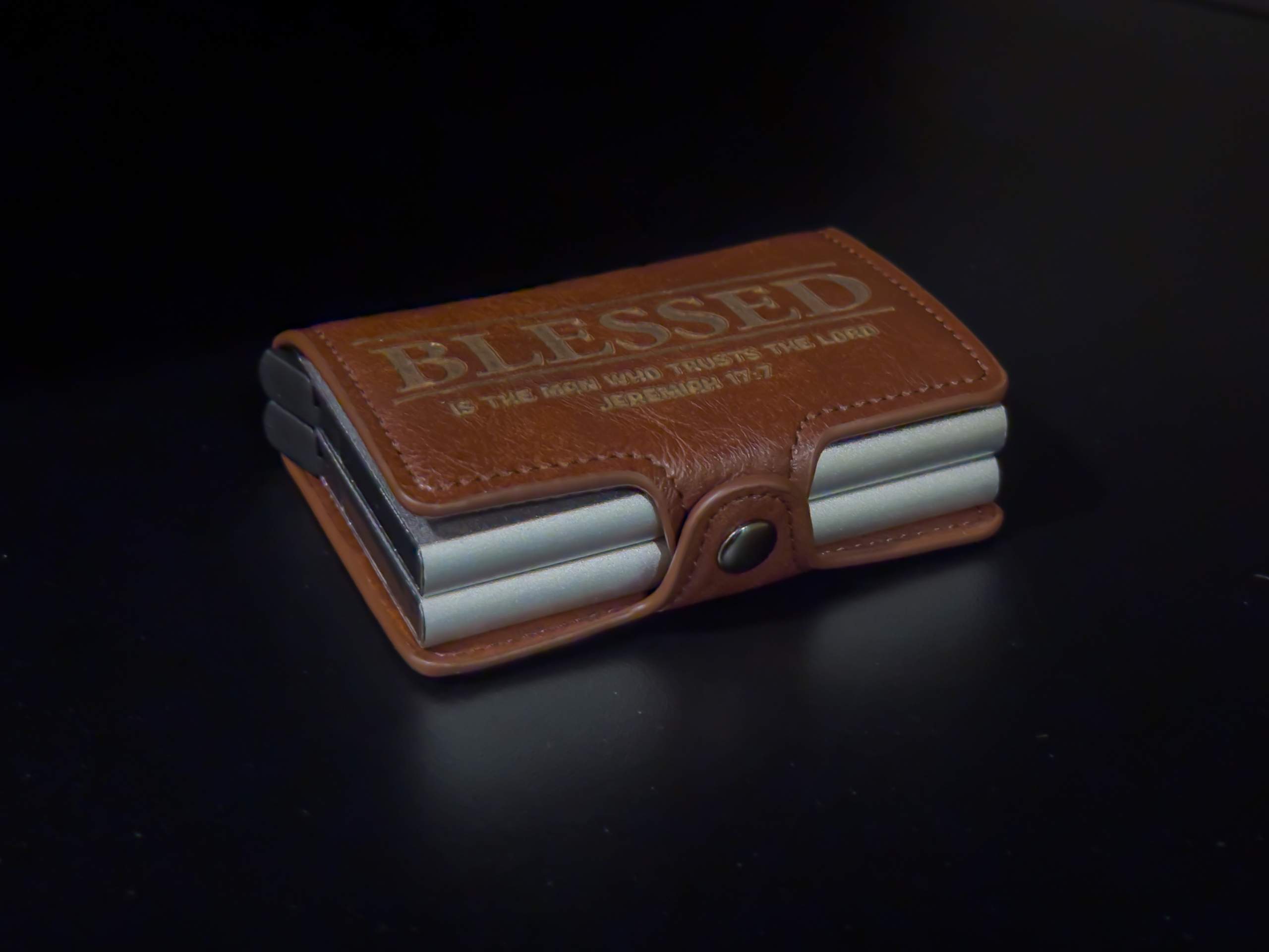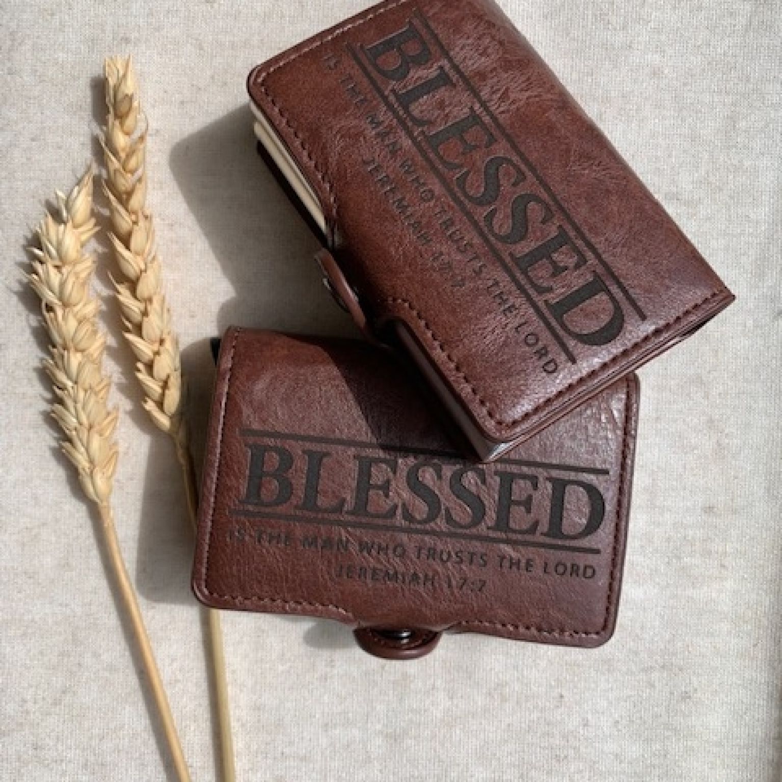 Met deze handige pasjeshouder met 2 vakjes voor creditcards, betaalpasjes en andere pasjes geef je een praktisch maar toch mooi cadeau met Vaderdag. Met meegeleverd kaartje binnenin met de tekst uit Jeremia 17:7-8.