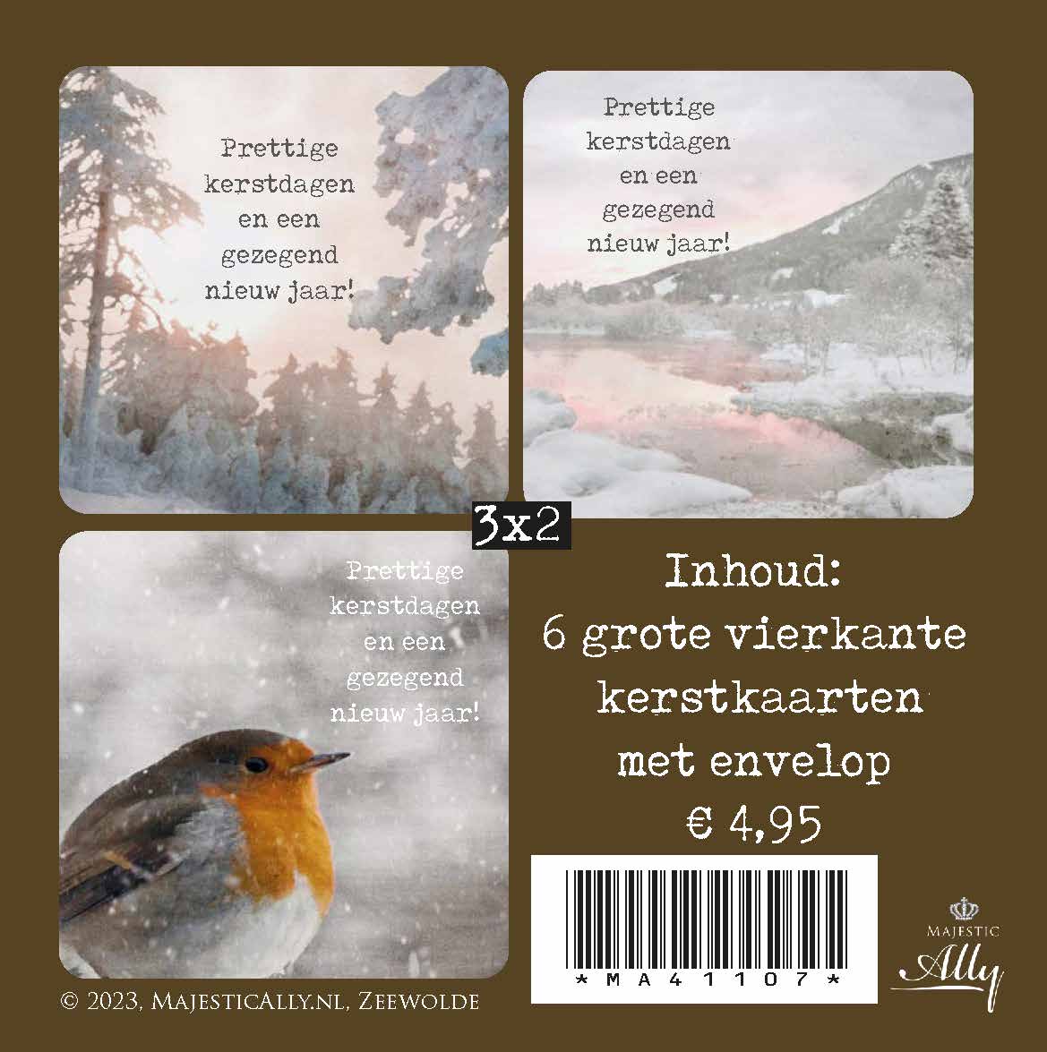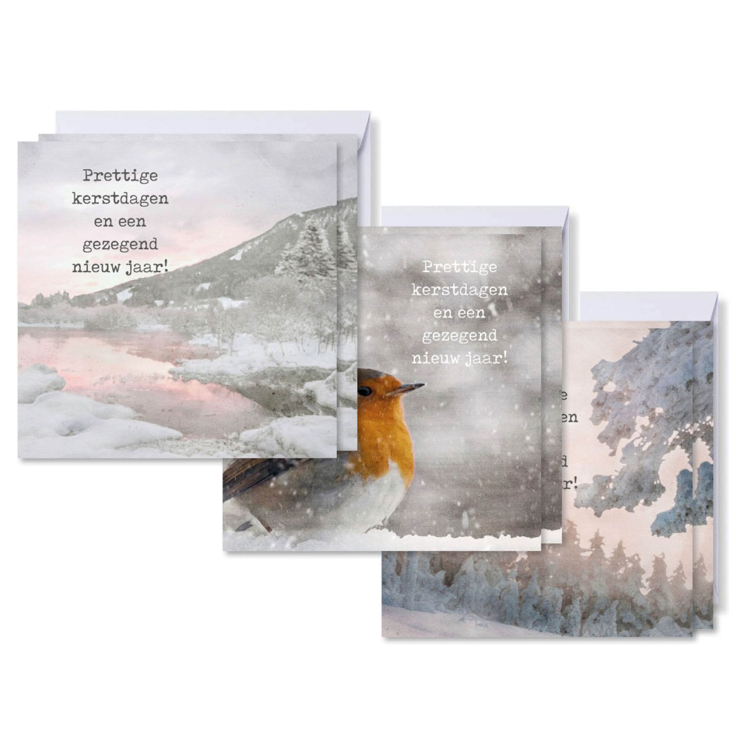 Breng nostalgische kerstsfeer met dit voordeelpak retro kerstkaarten! De set bevat 6 enkelzijdige kaarten met envelop, waaronder 2 exemplaren van elk ontwerp. De kaarten hebben een blanco achterzijde, perfect om je persoonlijke boodschap te schrijven. Ontdek prachtige designs met besneeuwde landschappen en een roodborstje. Een stijlvolle keuze voor de feestdagen!