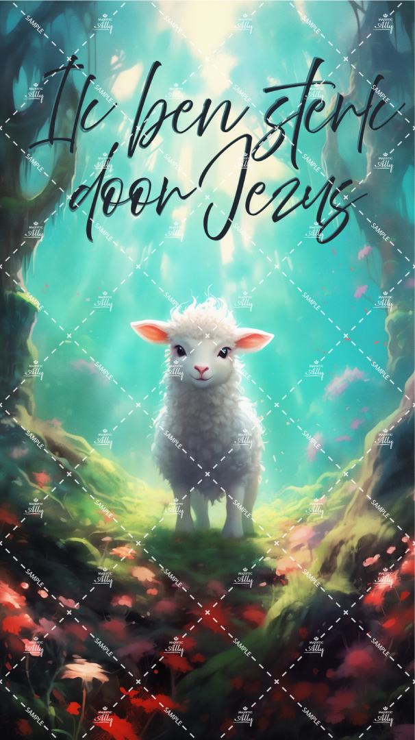 Download deze inspirerende Ik ben sterk door Jezus wallpaper voor je telefoon! Dit ontwerp toont een schattig lammetje dat door het bos wandelt, met de bemoedigende tekst Ik ben sterk door Jezus. Een prachtige herinnering aan je geestelijke kracht en je geloof, perfect voor dagelijks gebruik!