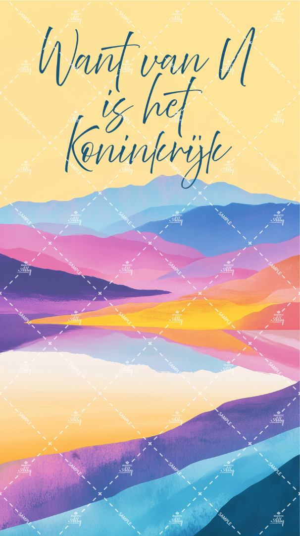 Download deze inspirerende Van U is het Koninkrijk wallpaper voor je mobiele telefoon! Het ontwerp toont majestueuze bergen in prachtige kleuren en herinnert je aan Gods koninkrijk en kracht. Een stijlvolle en geestelijke achtergrond om je geloof dagelijks zichtbaar te maken.